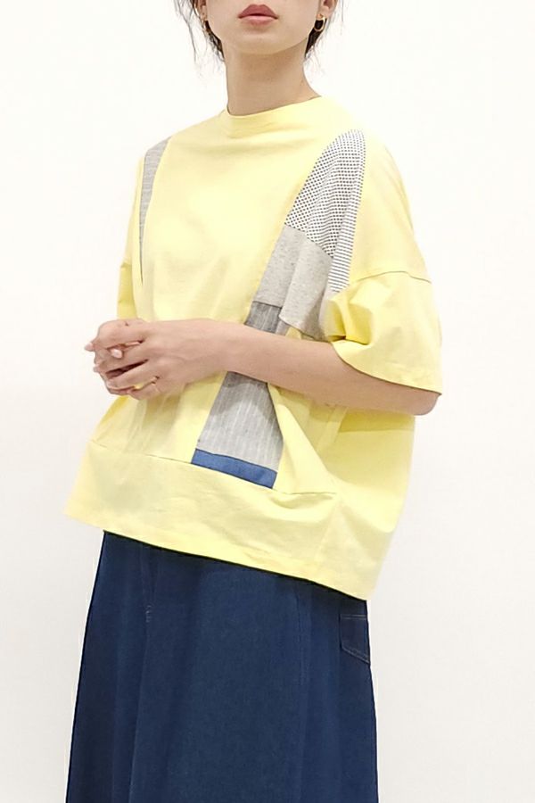 5種類の素材を贅沢に切り替え、シンプルな装いにひとさじの冒険心を加えるデザインTシャツ。