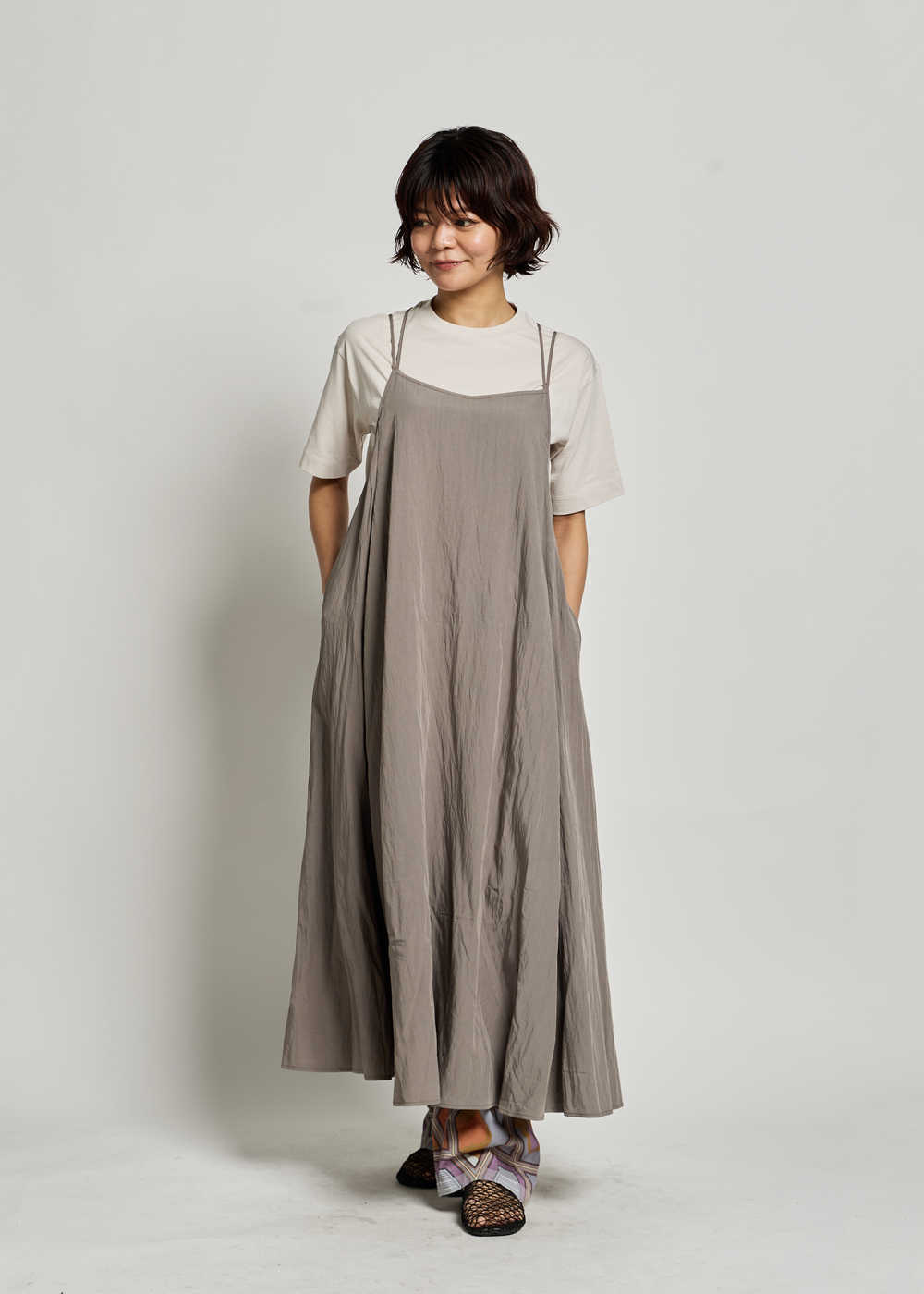 ポケットに入った贅沢なタックギャザーが印象的なワンピース。