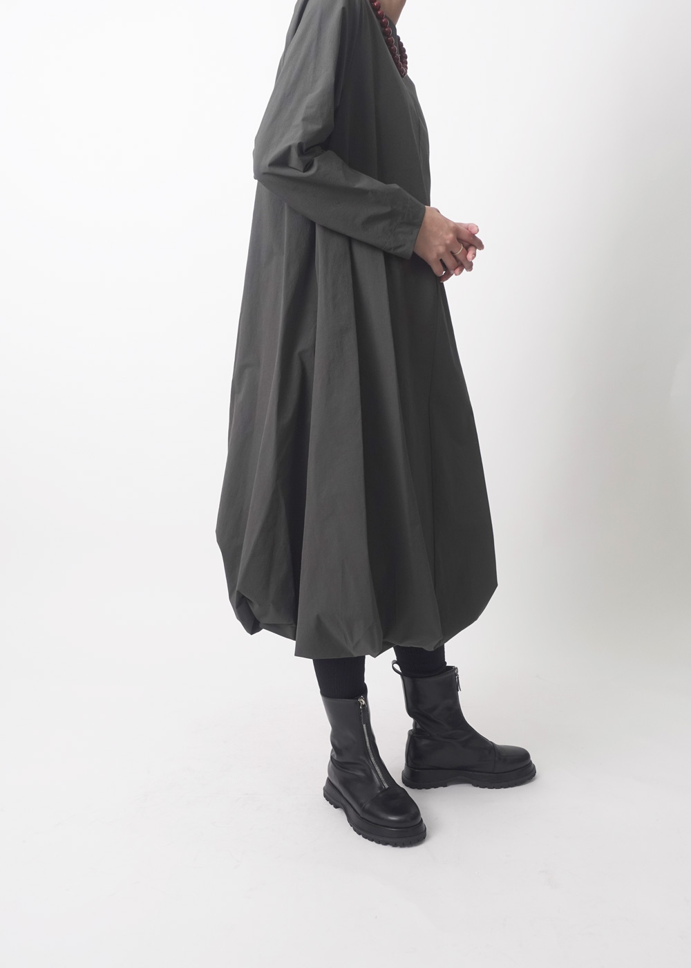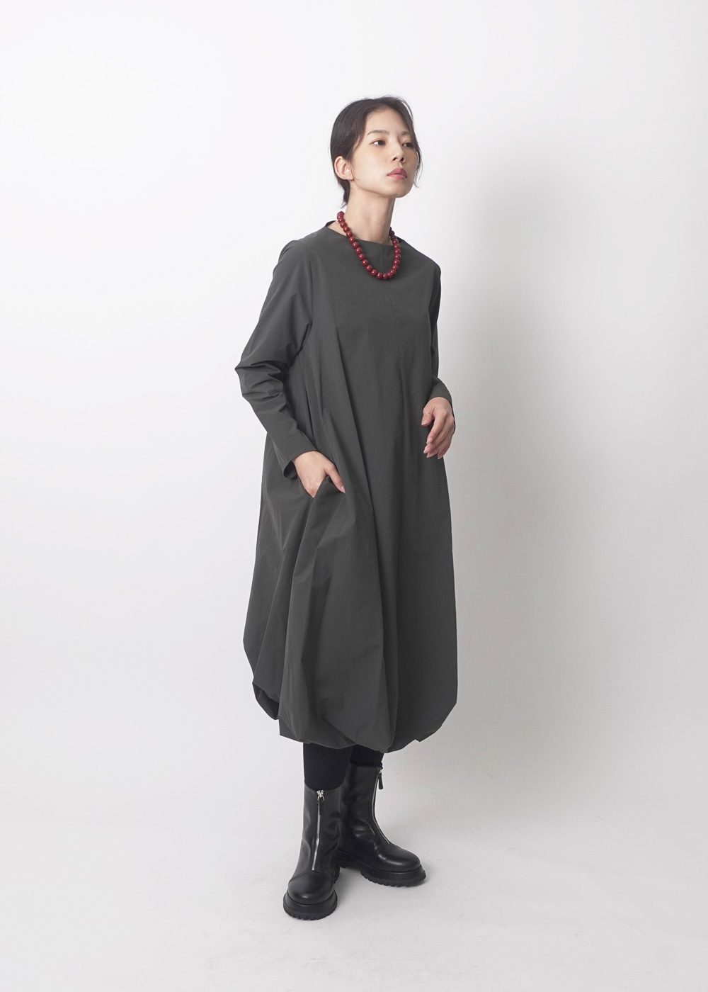 レイヤードで自分らしいスタイルを広げられる、大人のためのバルーンワンピースです。