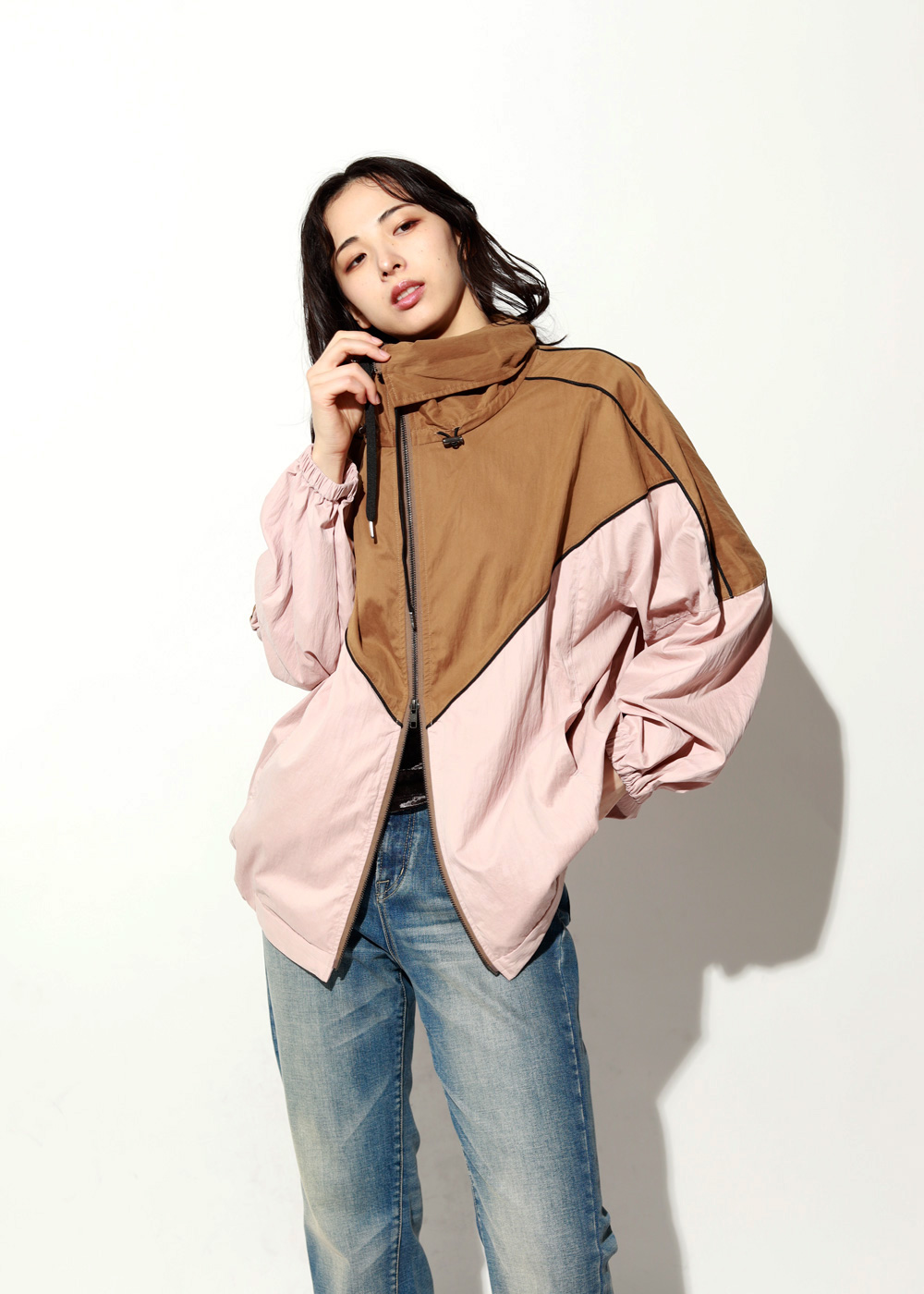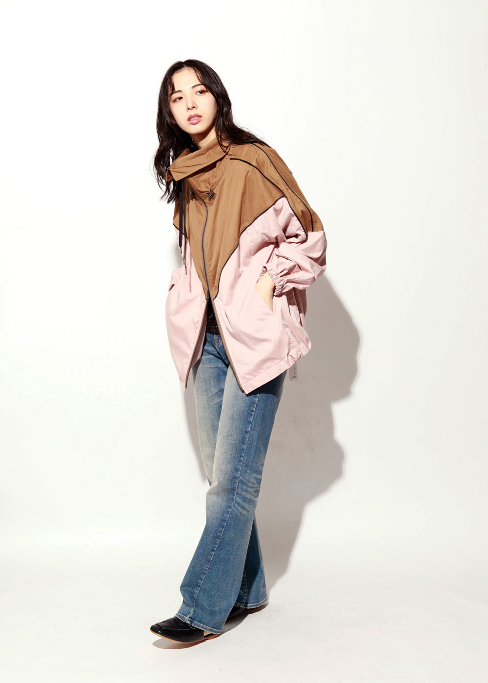 高さのある衿は折り返したりコードで絞ったりとアレンジ可能。