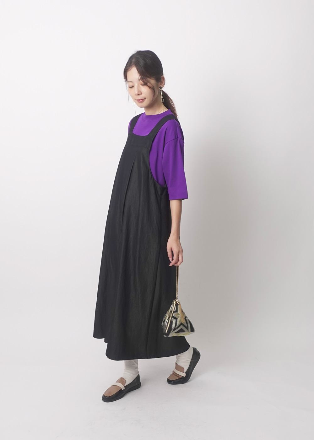 ストンとした縦ラインを描き出し、カジュアルの中にシックな空気を纏わせます。