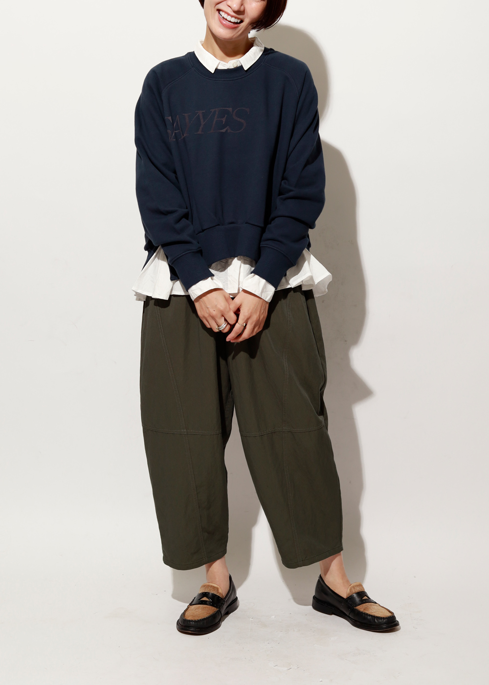 ワイドなシルエットに、コンパクトな丈感が新鮮。