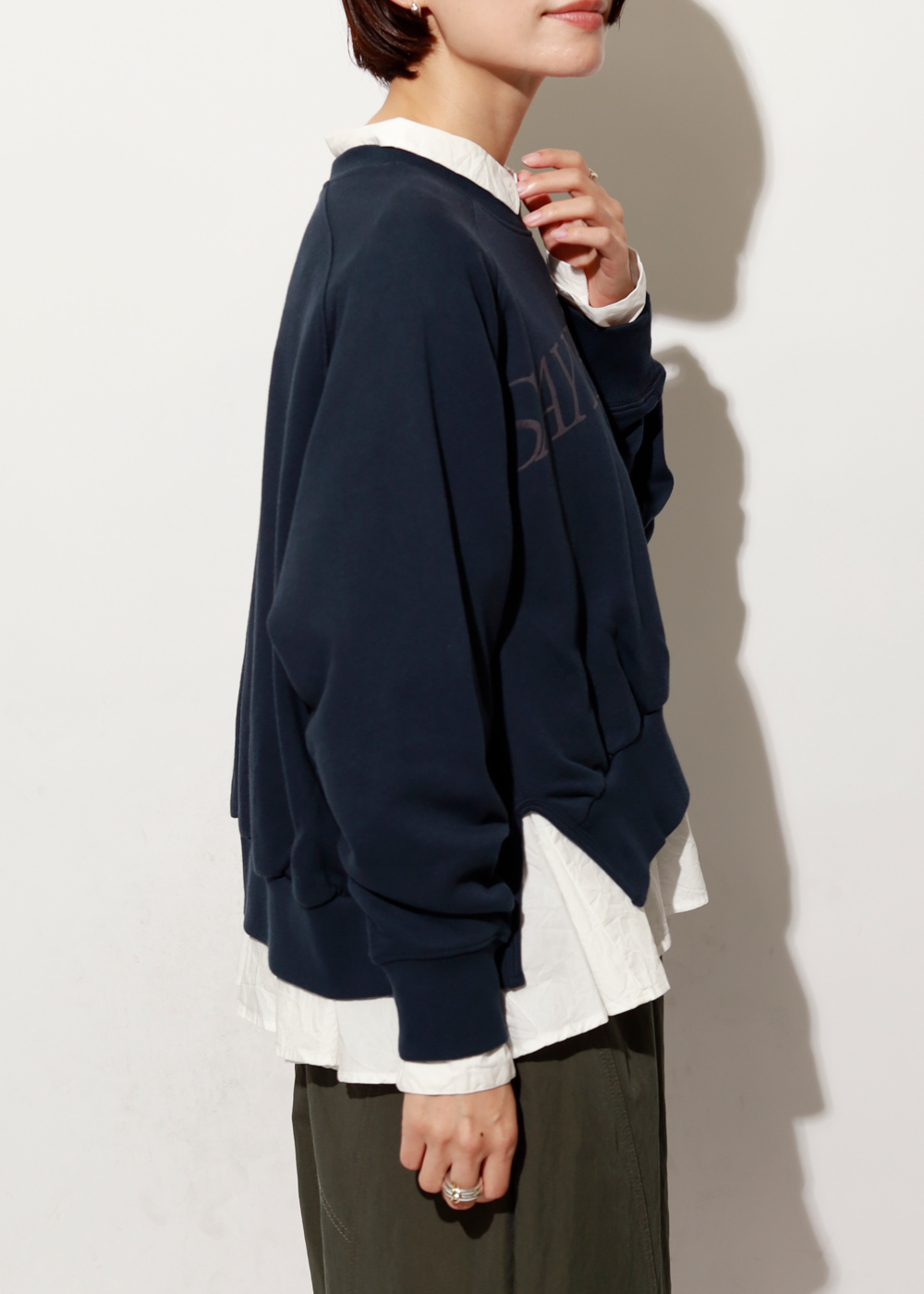 アシンメトリーなロゴプリントが、さりげない個性をプラス。