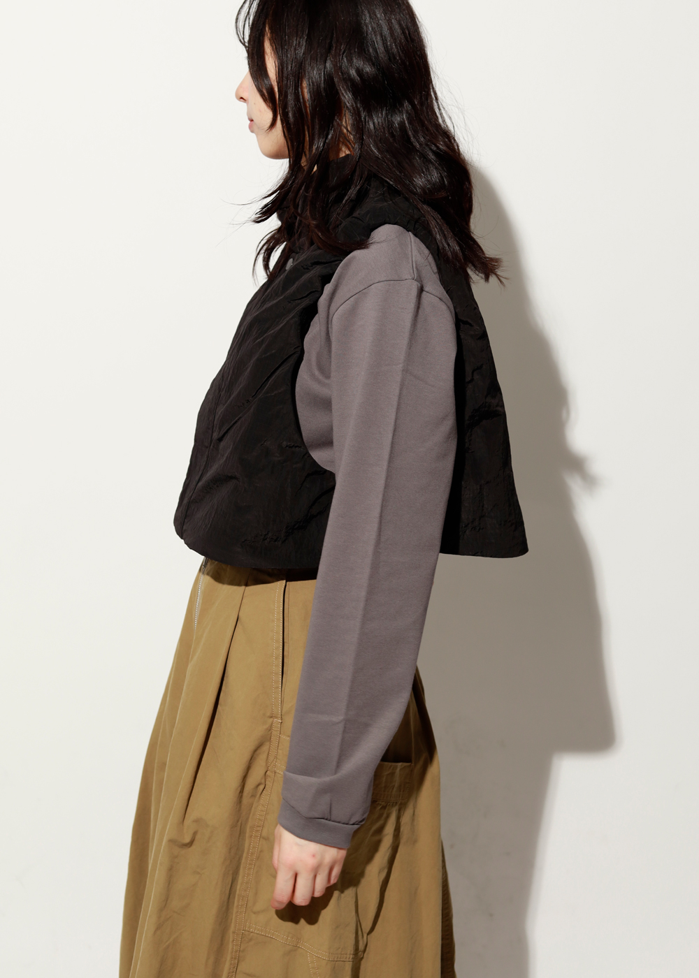裾の異素材切り替えやカーゴポケットなどディテールにもこだわり。