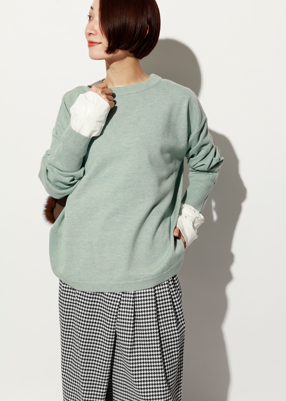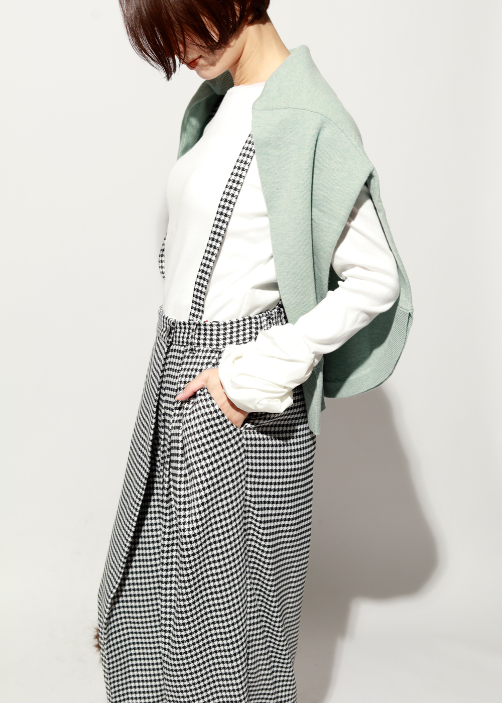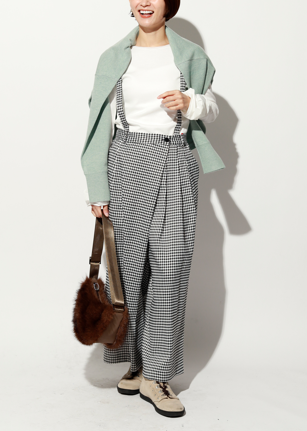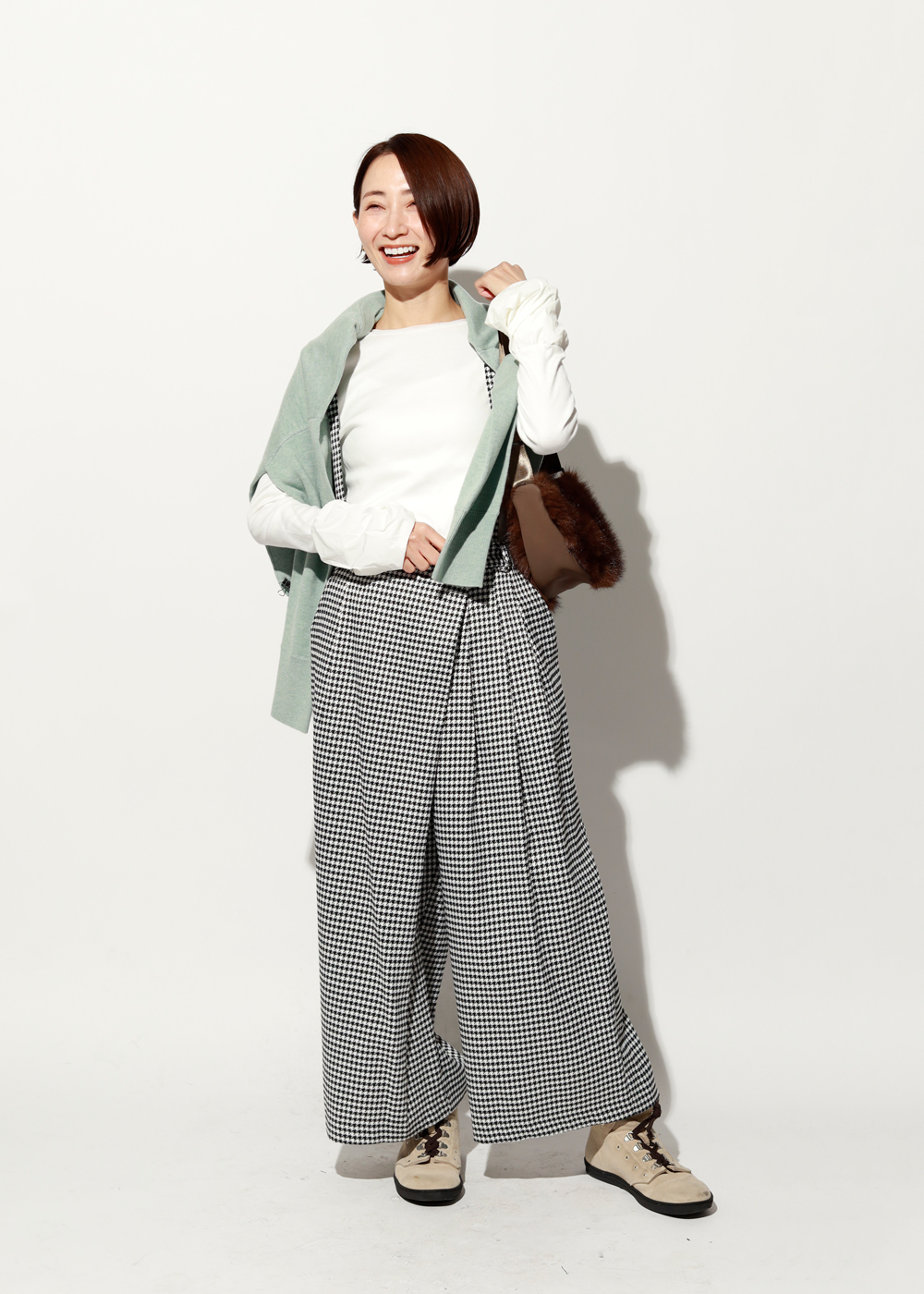 小さめの千鳥柄は、2025AWのトレンドでもあるクラシックムードを