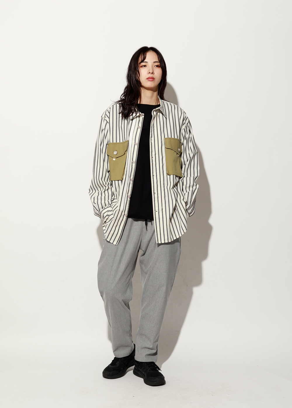 衿元はすっきりと上品に仕立て、どんなボトムとも好バランス。