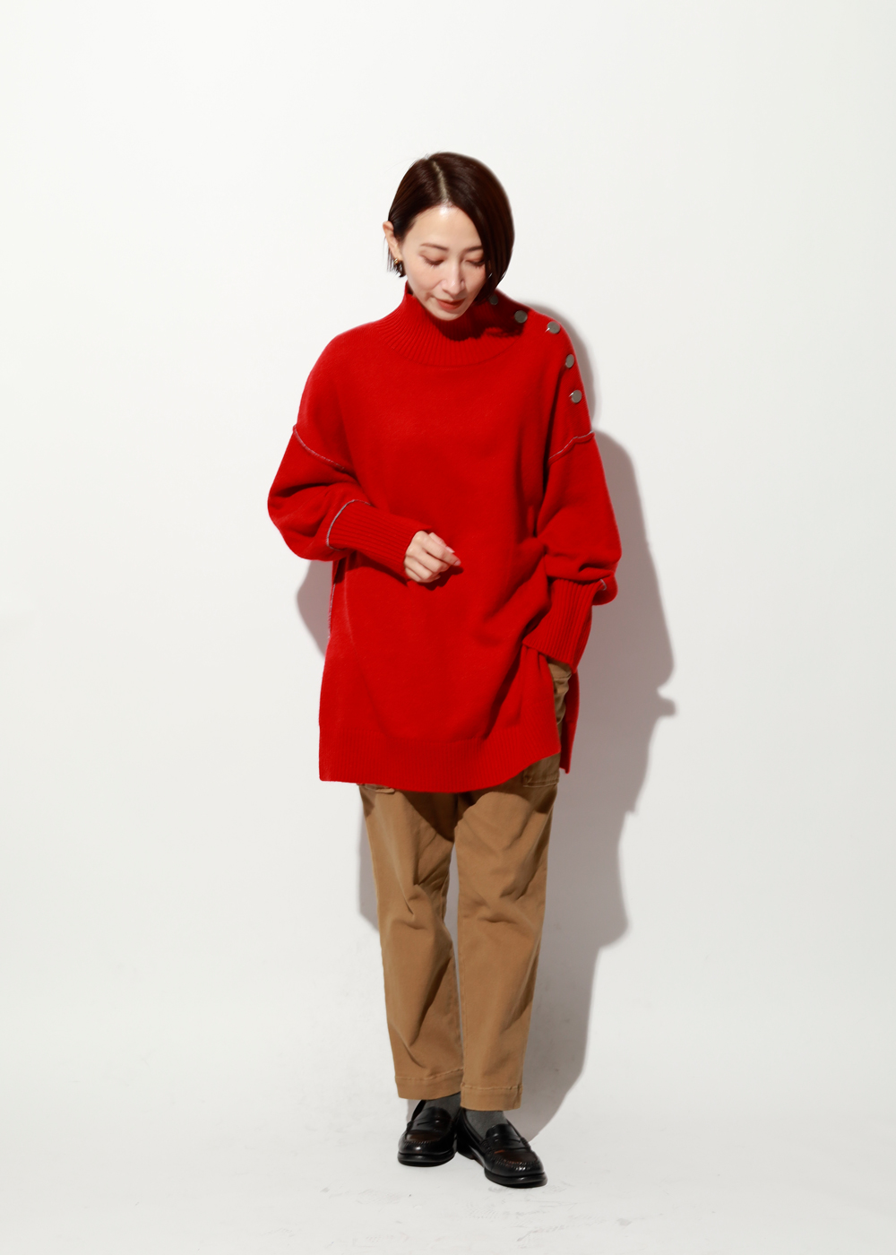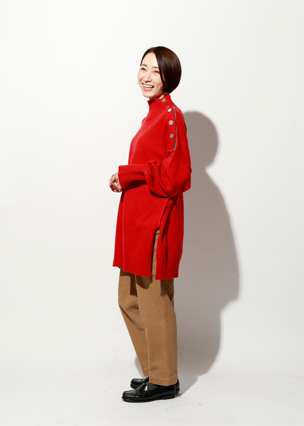 程よい肉厚だからこそ一枚着でも温かく、優秀ニット。