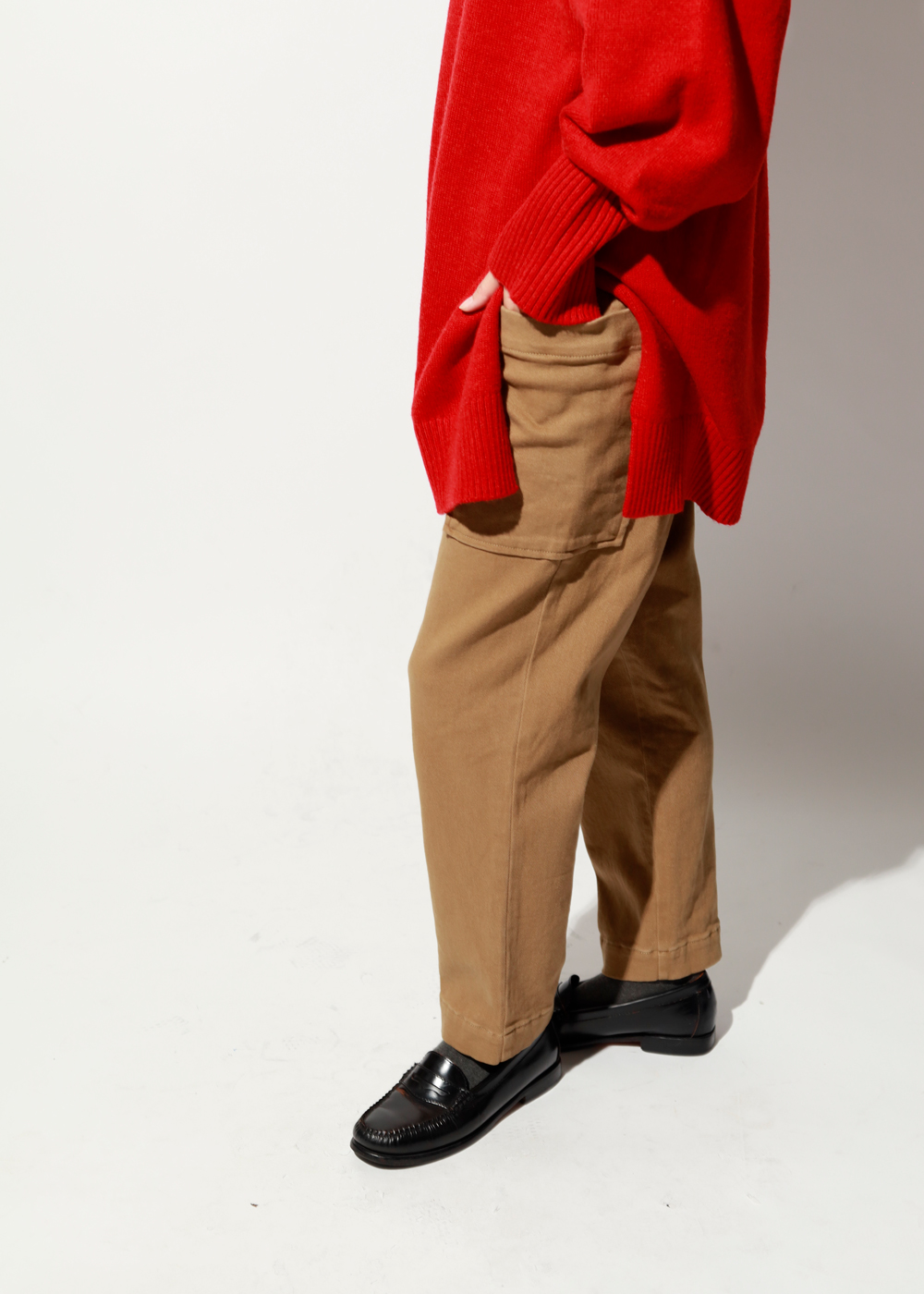 ゆったりとしたシルエットが体のラインを拾わず、自然にこなれ感を演出。
