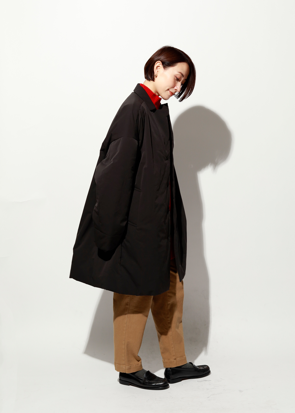 また首まわりは窮屈さを感じにくいハイネック仕様に。