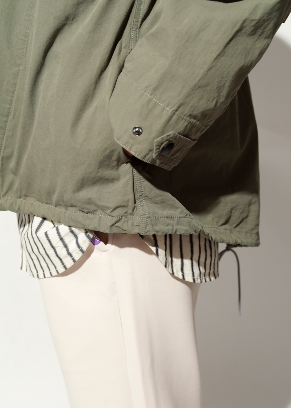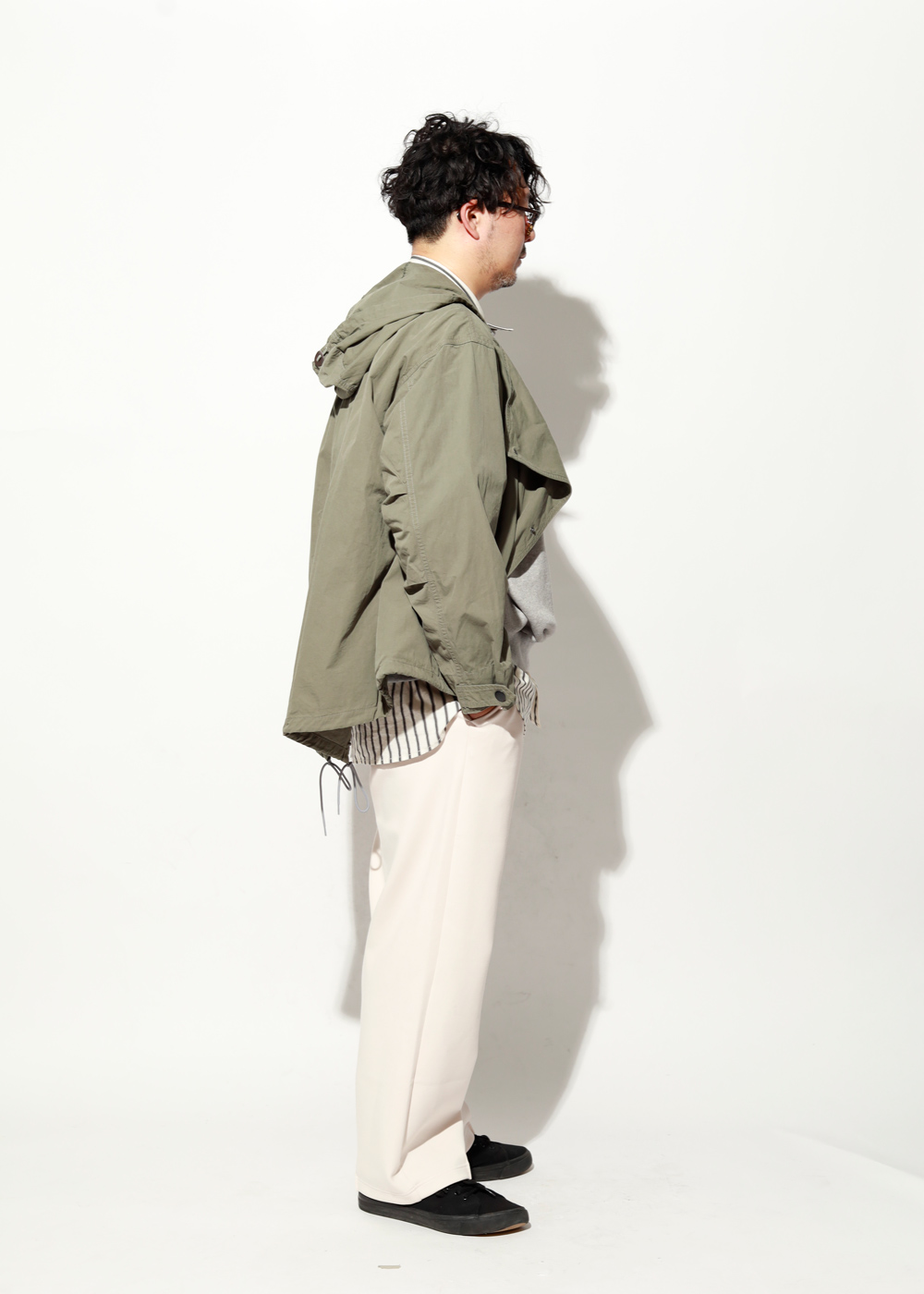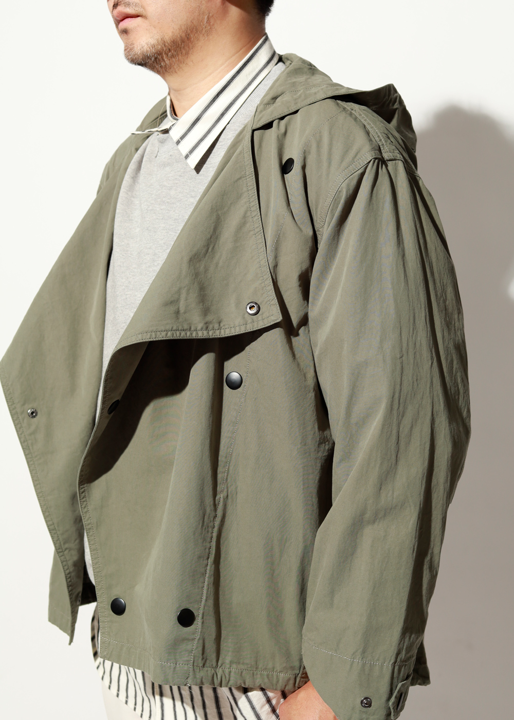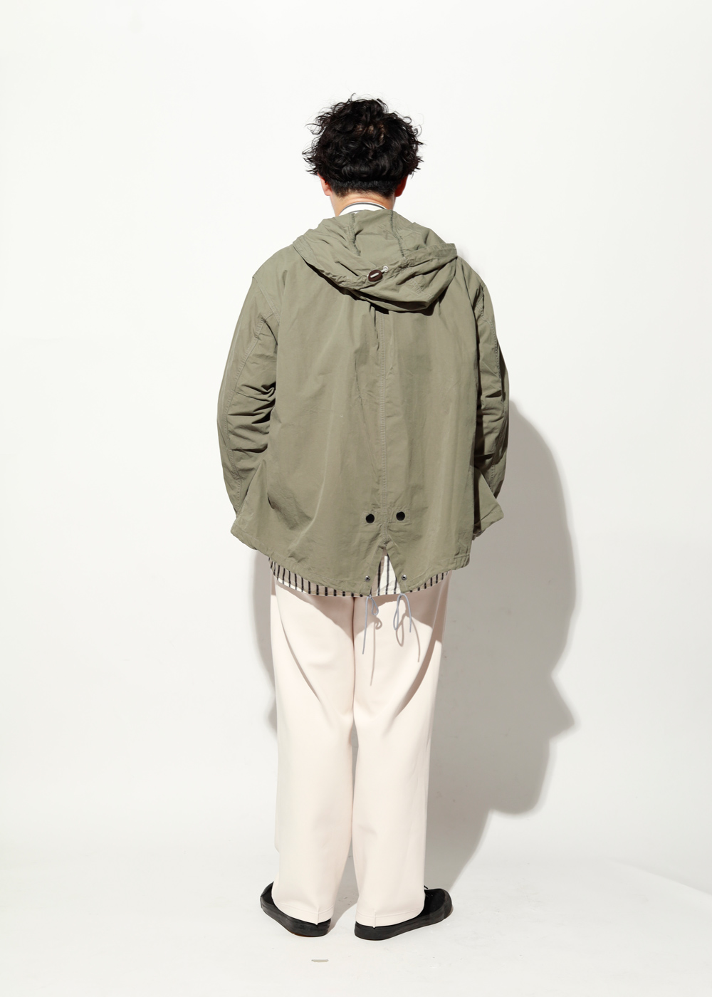 ミリタリーを今の気分で軽やかに。ドレープが揺れるショート丈が新鮮です。