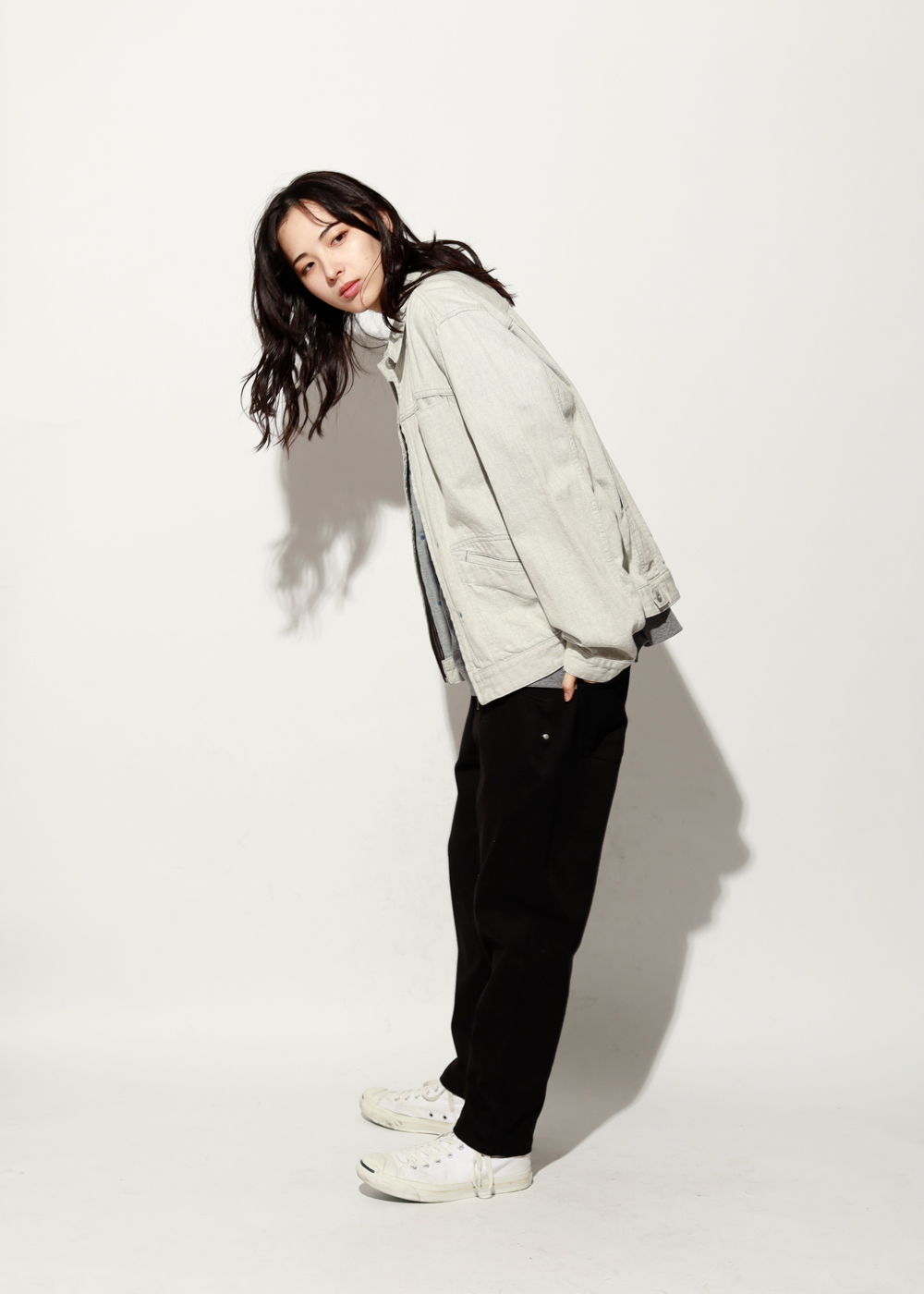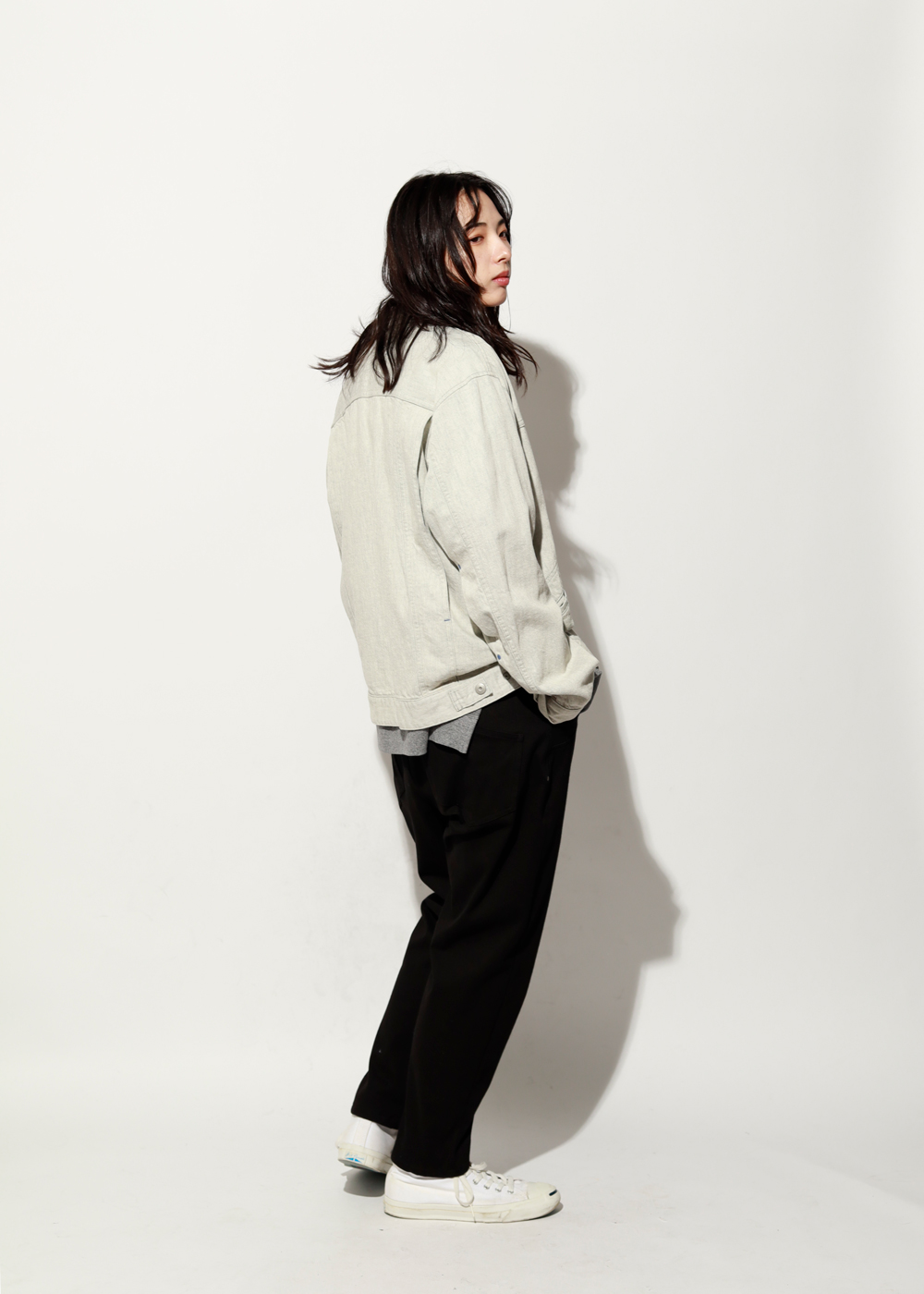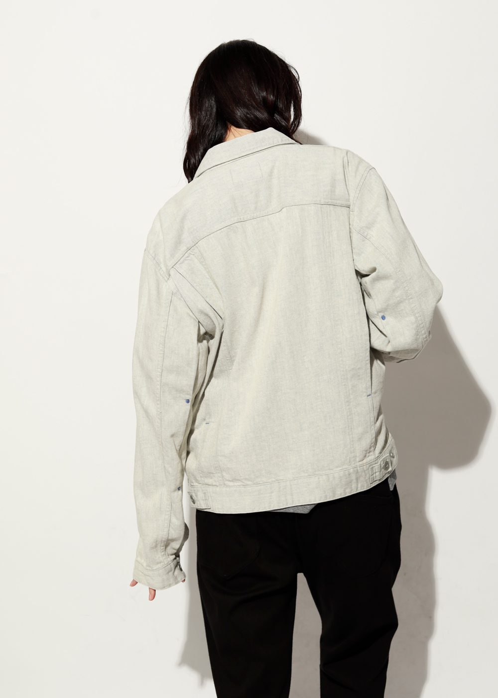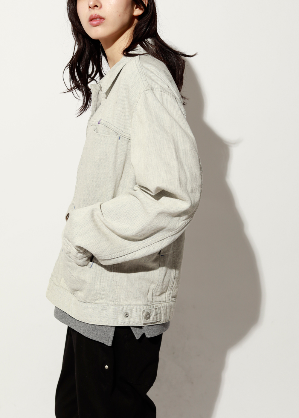 柔らかなデニムを使い、季節を問わず羽織れる一枚に。