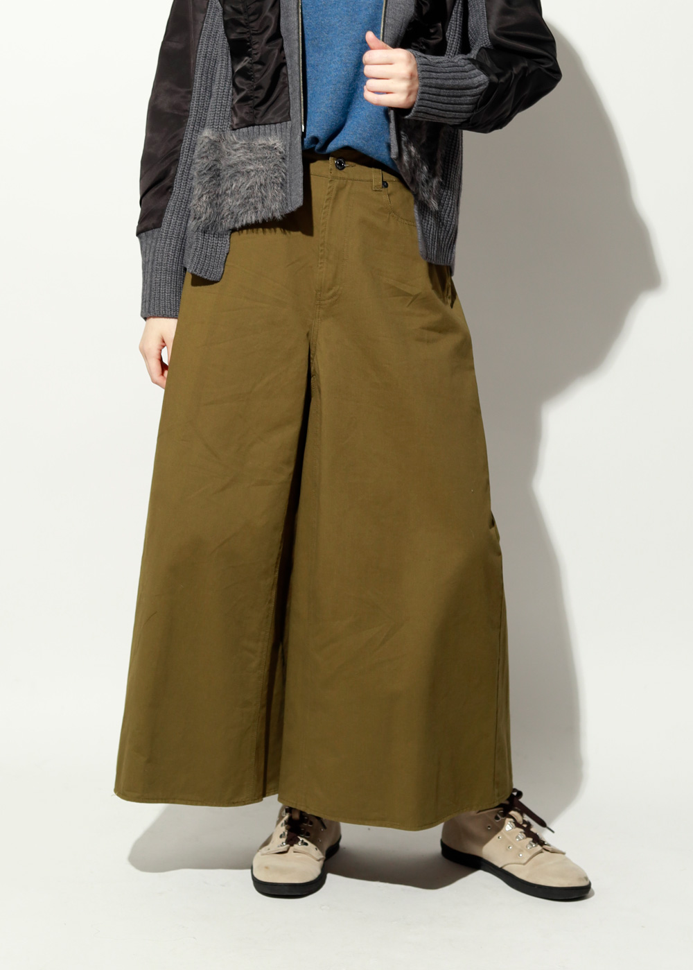 前はファスナーできれいめに、脇には畦リブを入れてほっそり見えを演出。