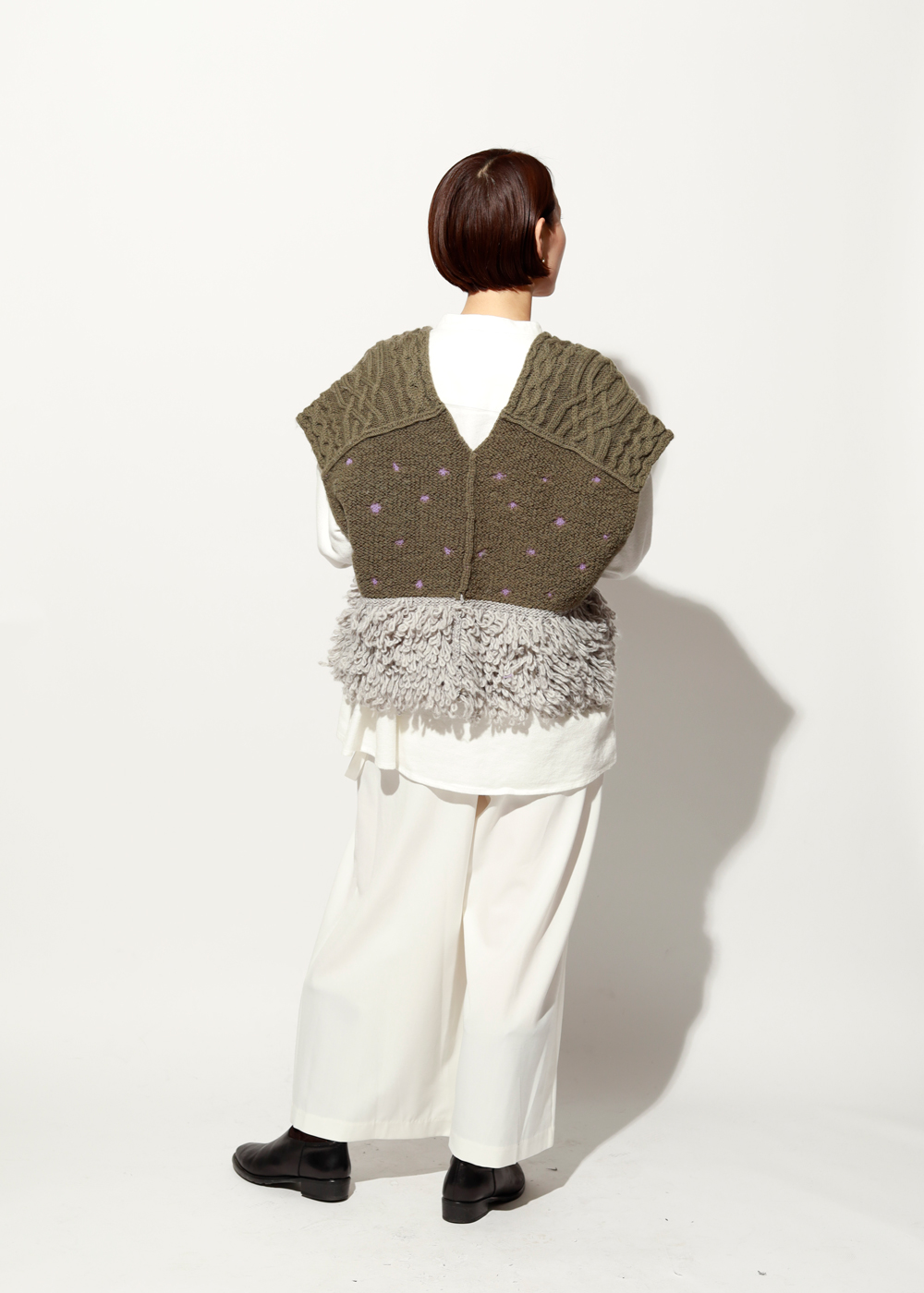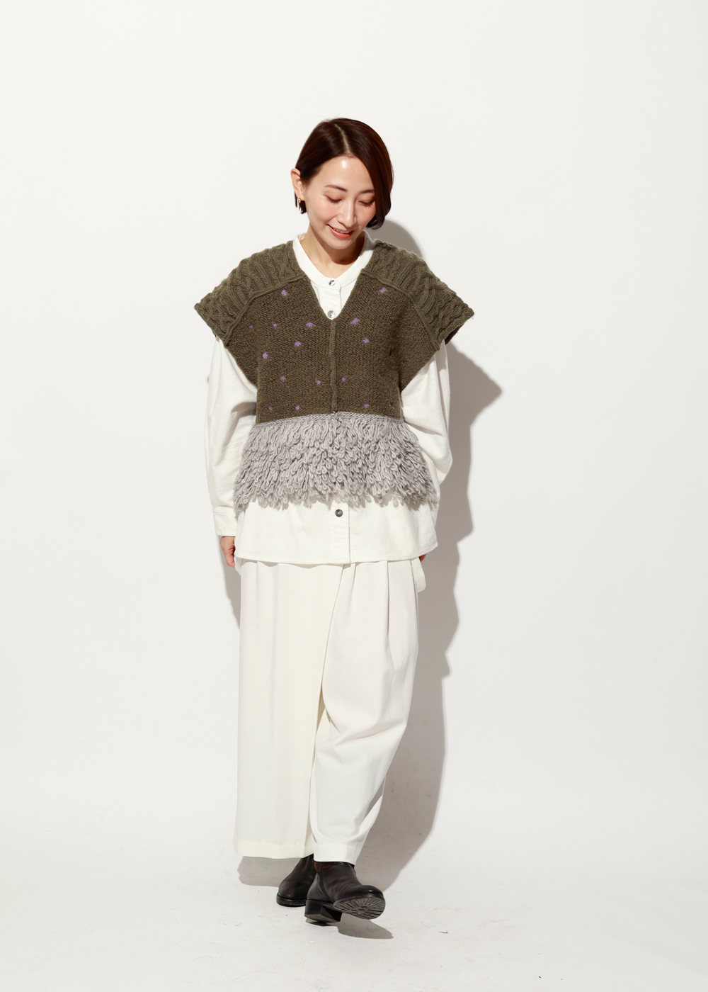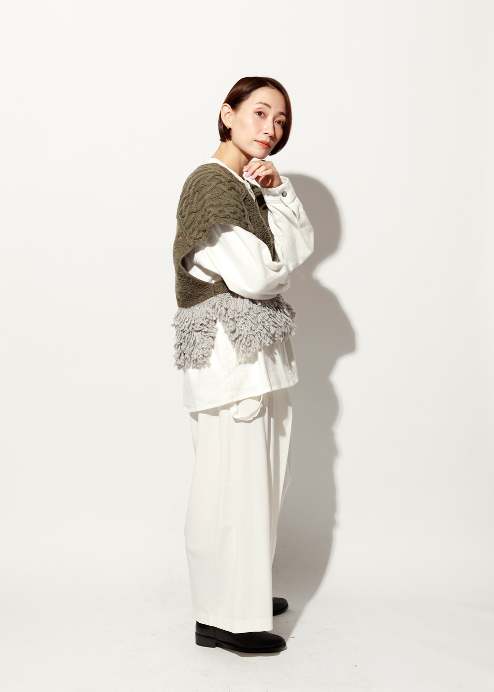 異素材の表情で魅せる、大人の立体ニットベスト。