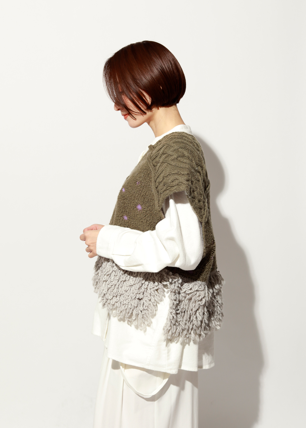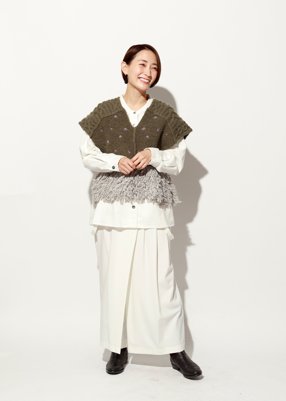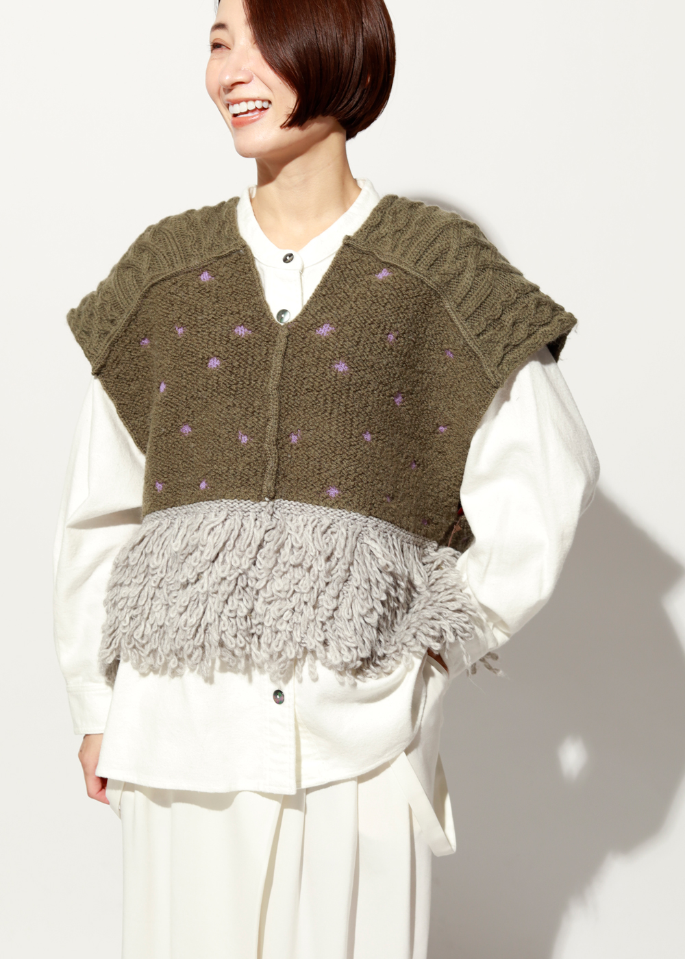 異素材の表情で魅せる、大人の立体ニットベスト。