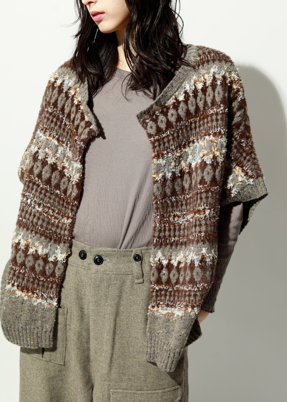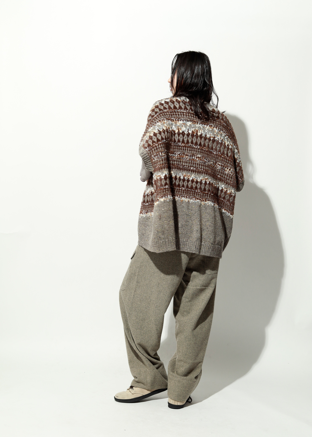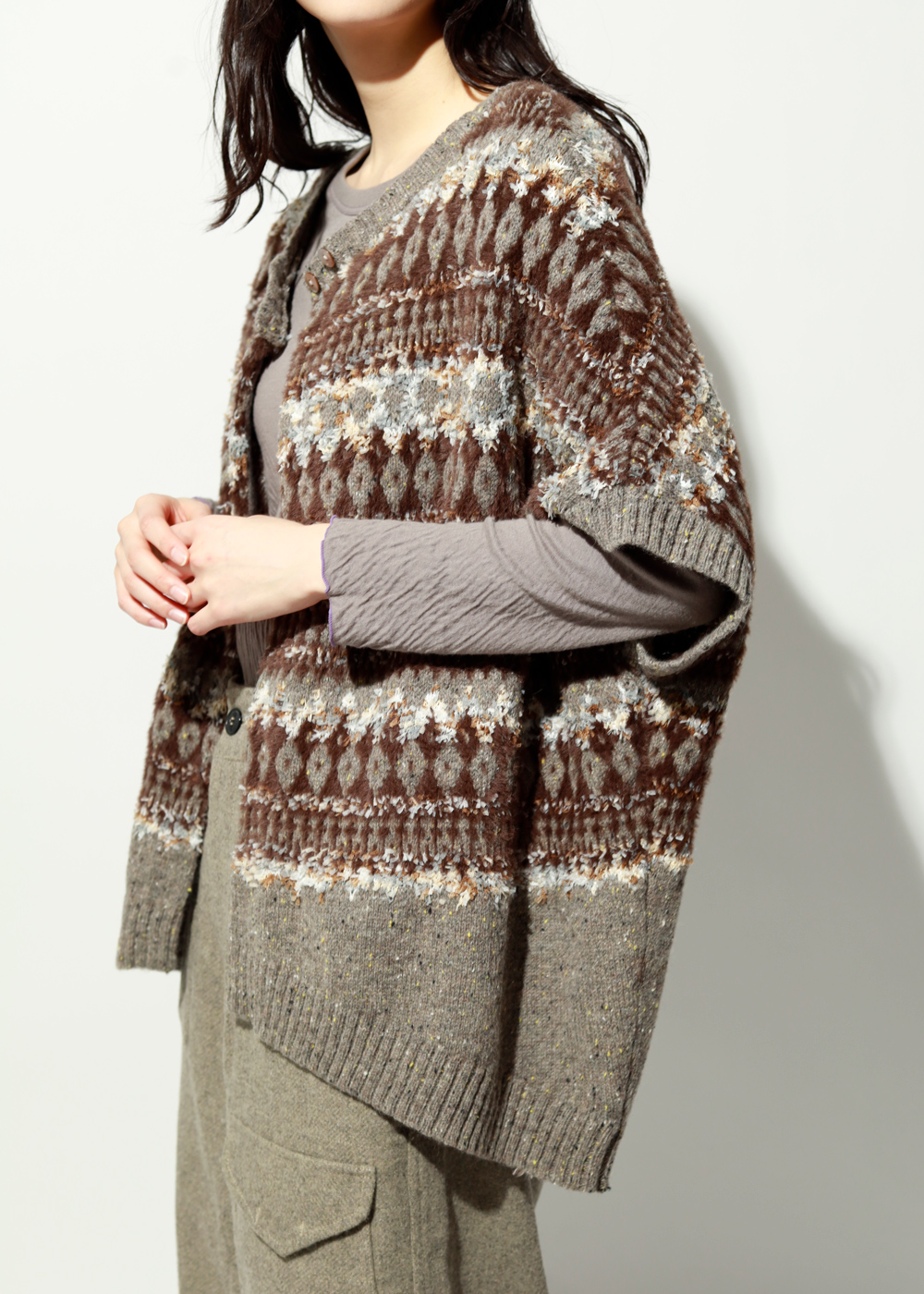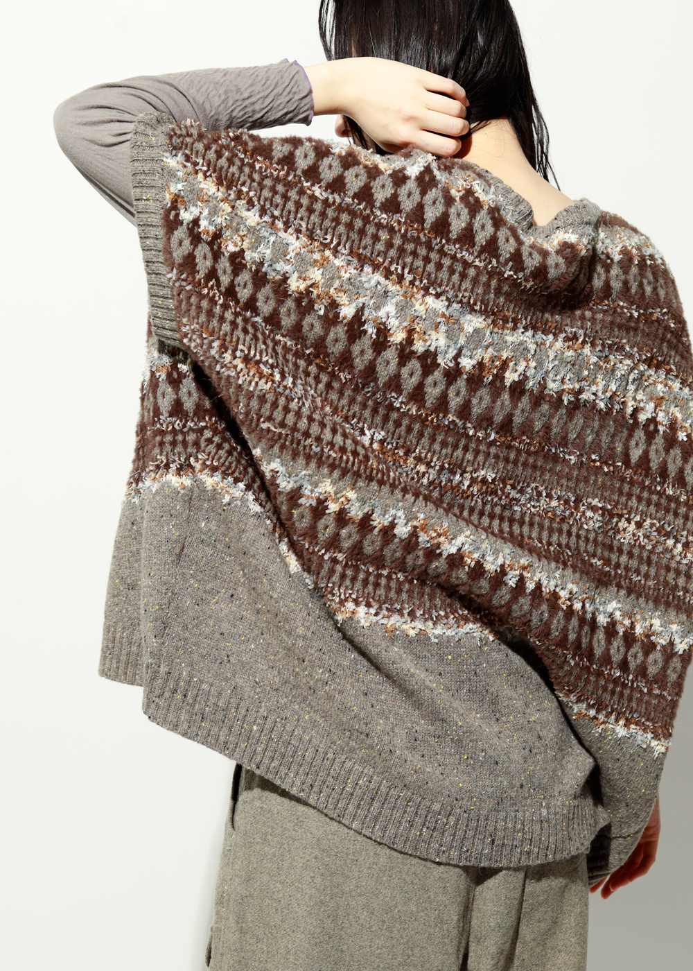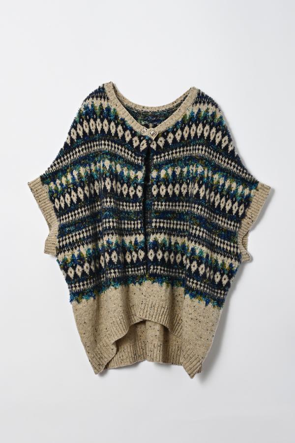 アーガイル柄を全面にあしらった、ポンチョ型シルエット。