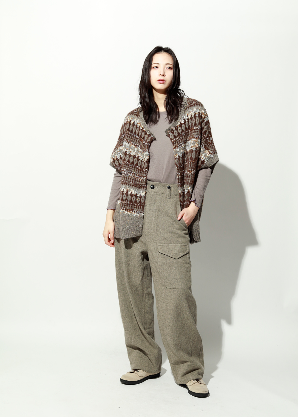 カーゴパンツやワイドデニムとも相性が良く、ミリタリーやワークスタイルにも上品に馴染みます。