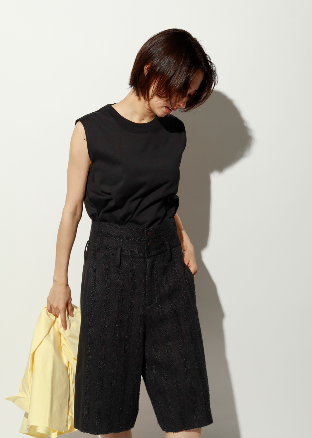ウールツイードショートパンツで魅せる、洗練の冬スタイル。