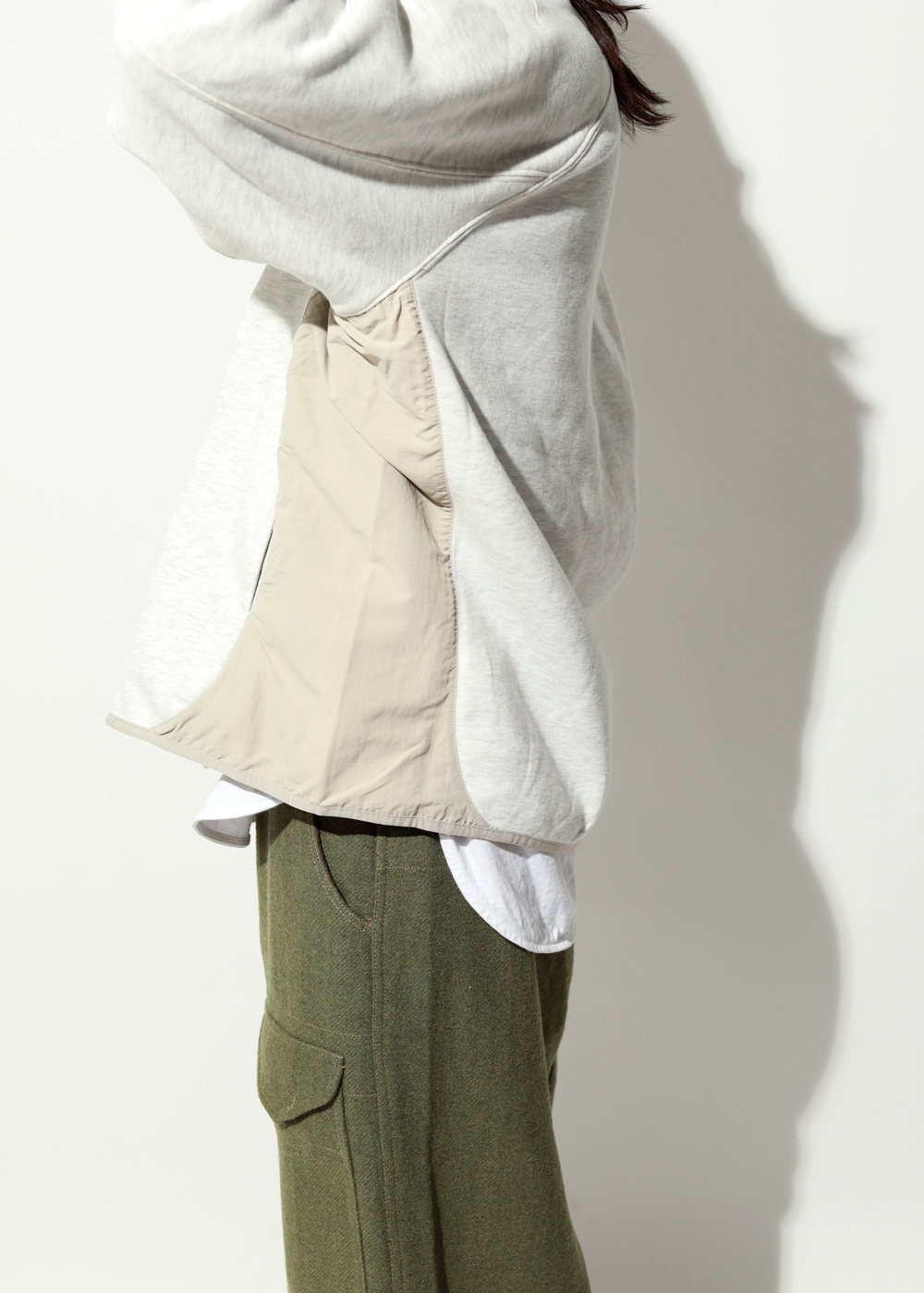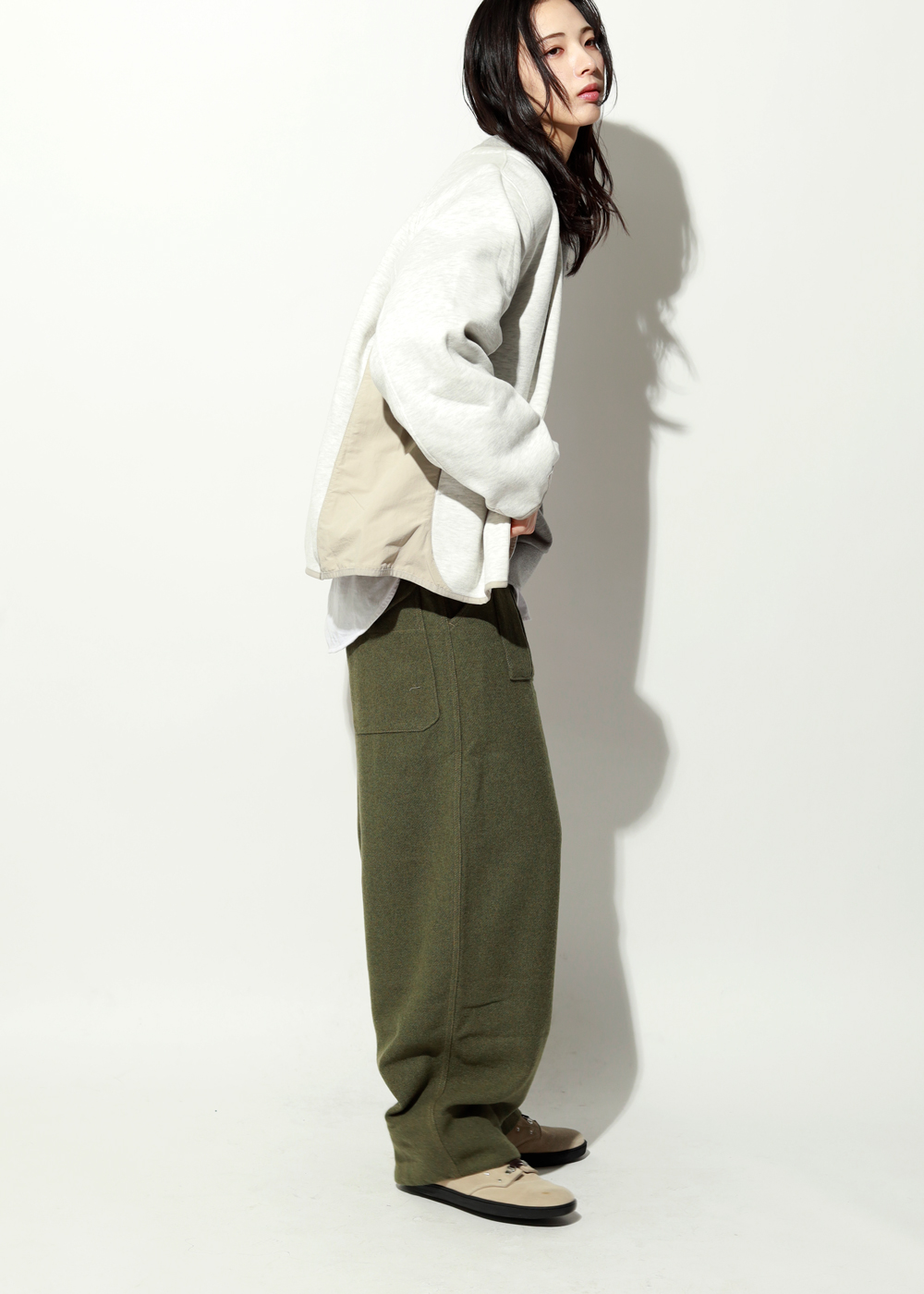 地厚裏毛×ピーチ起毛でほのかな艶とスウェード風タッチを実現。