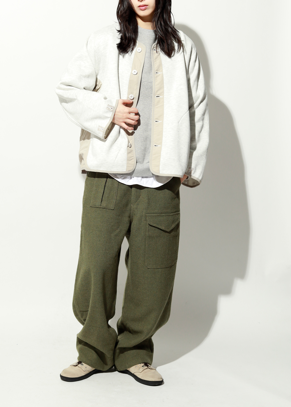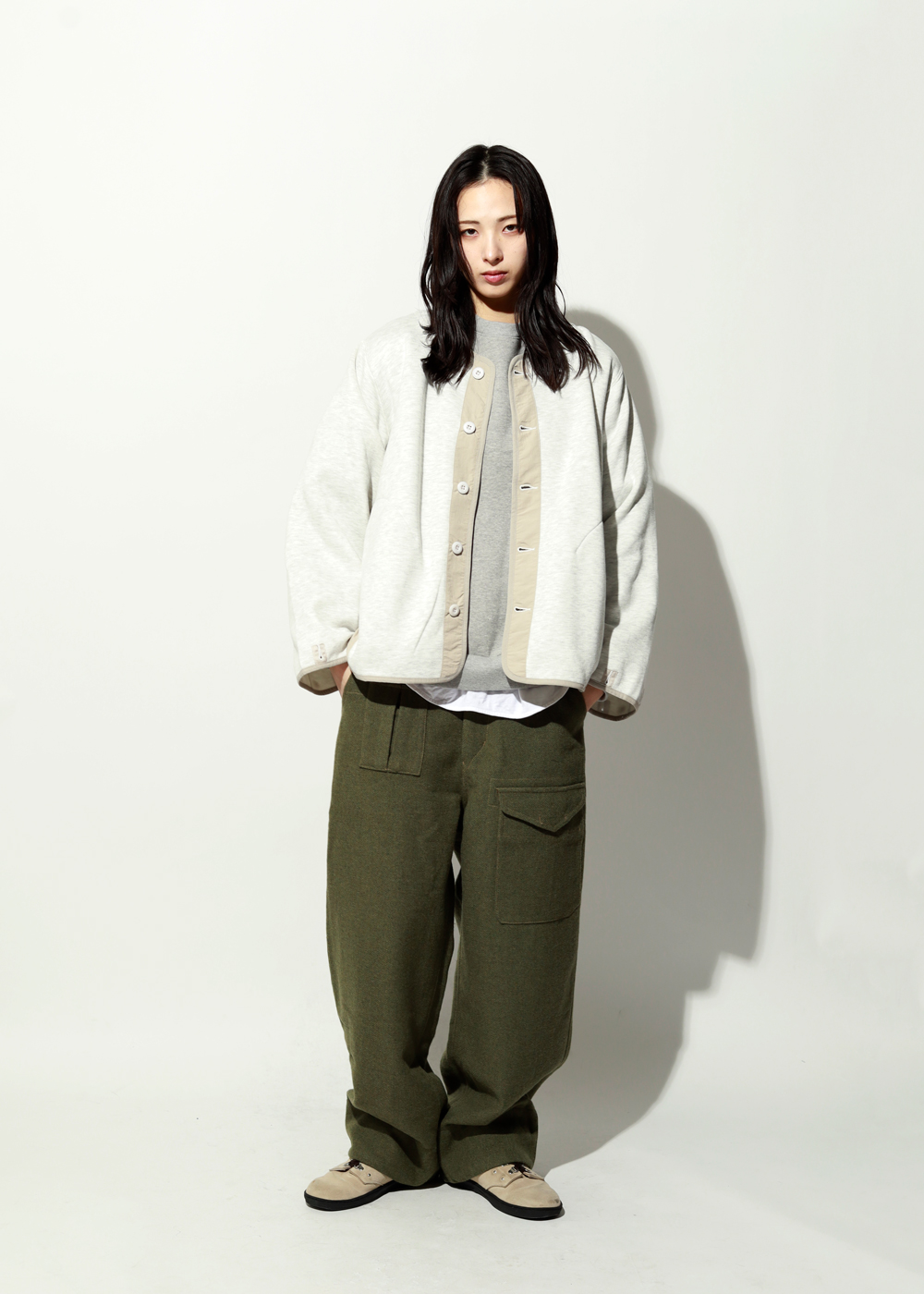 無骨なライナージャケットを上質な裏毛でクリーンに落とし込んだライナーカーデ。
