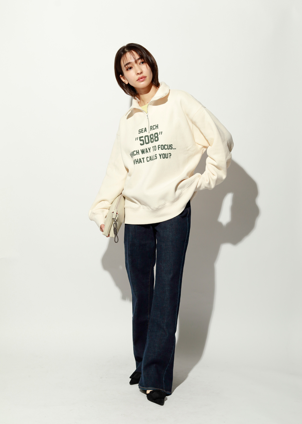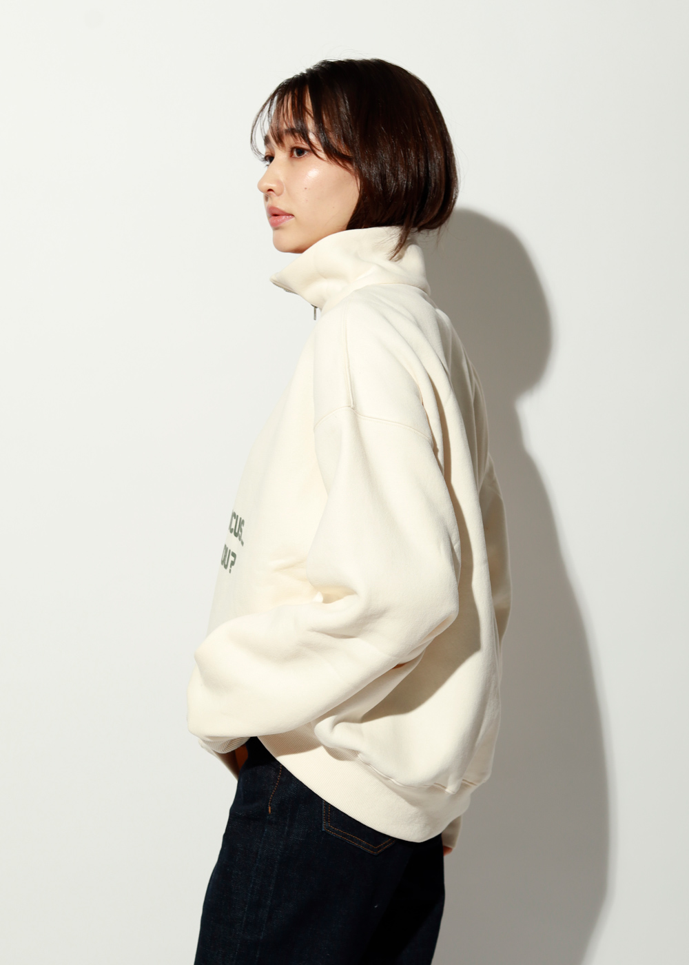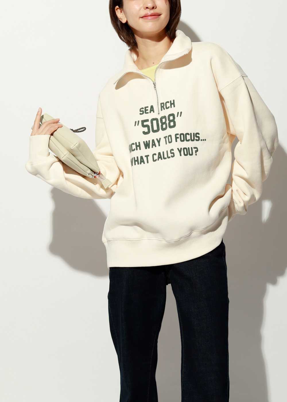 柔らかな裏起毛に、都会的なハーフジップ。ふっくら軽く、冬場のケアもスマートです。