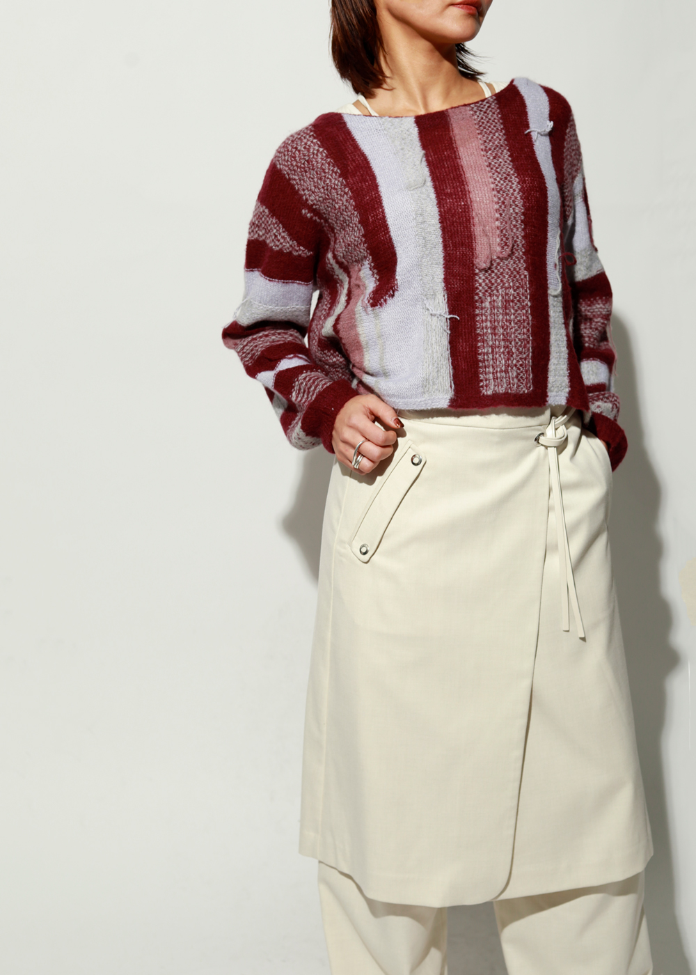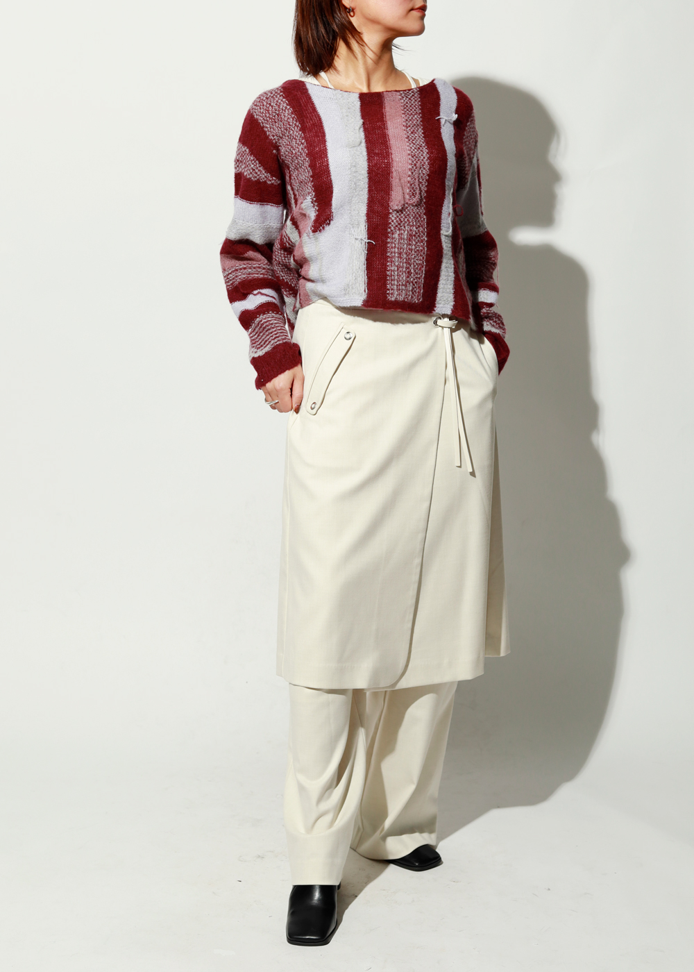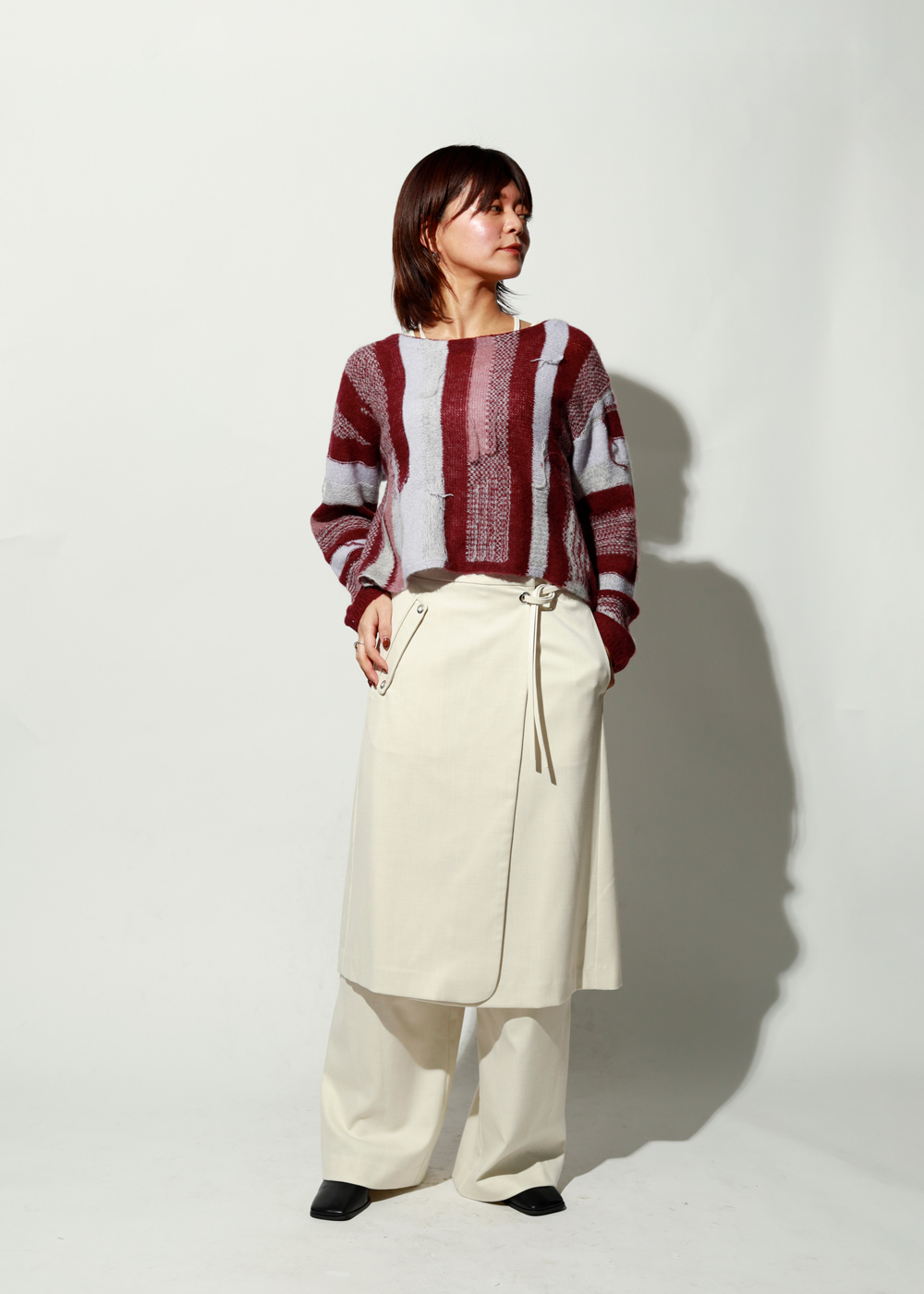 今シーズンなら重ねて映えるウールライクカバースカート&パンツを合わせに。