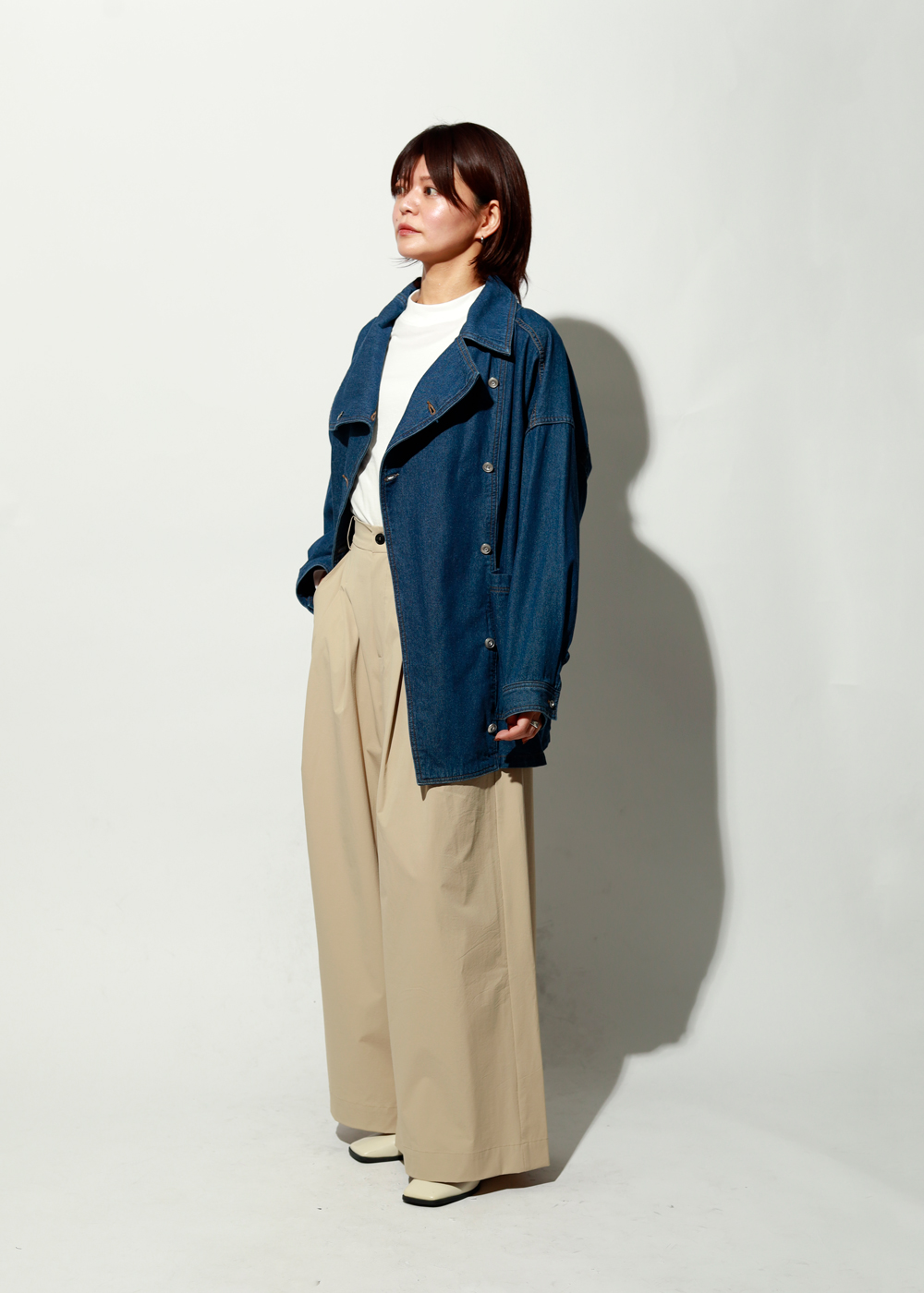デニムのラフさとベージュの柔らかさ、そこに白の抜けを重ねることで、