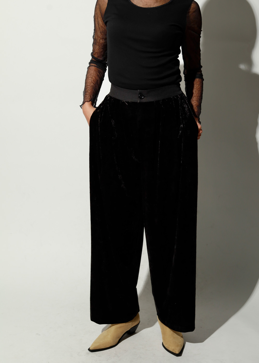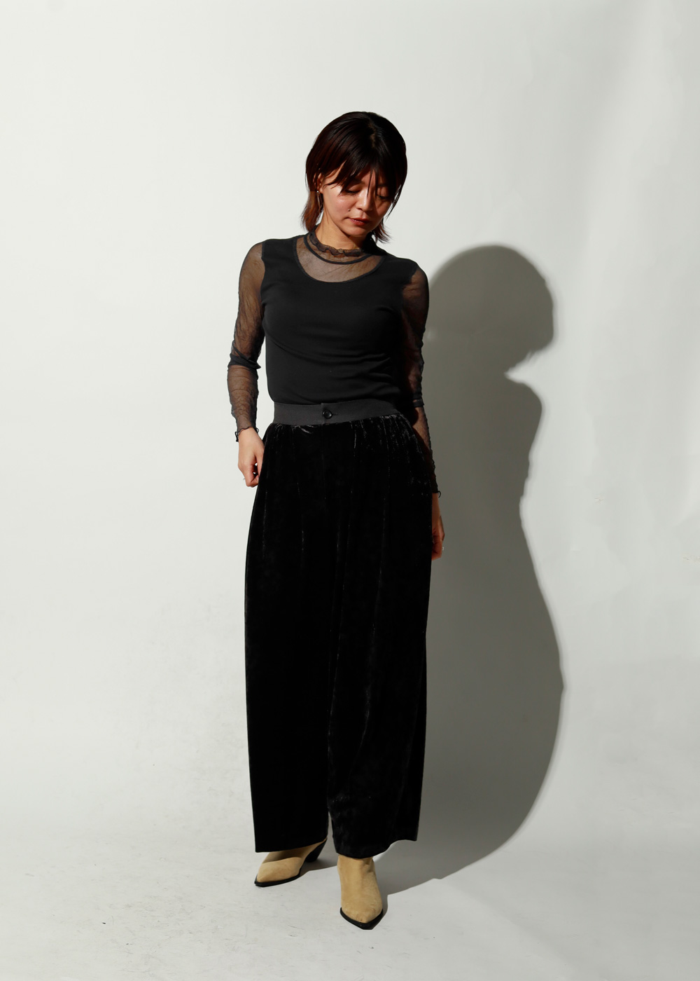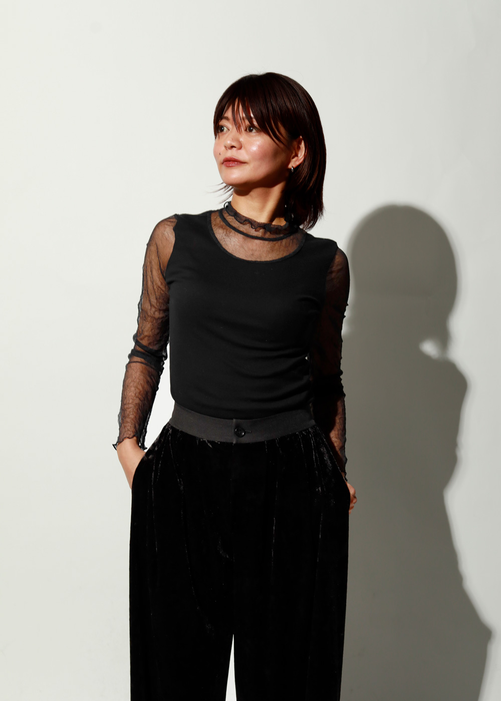 ほんのり透ける質感がスタイリングに抜け感と奥行きをプラス。