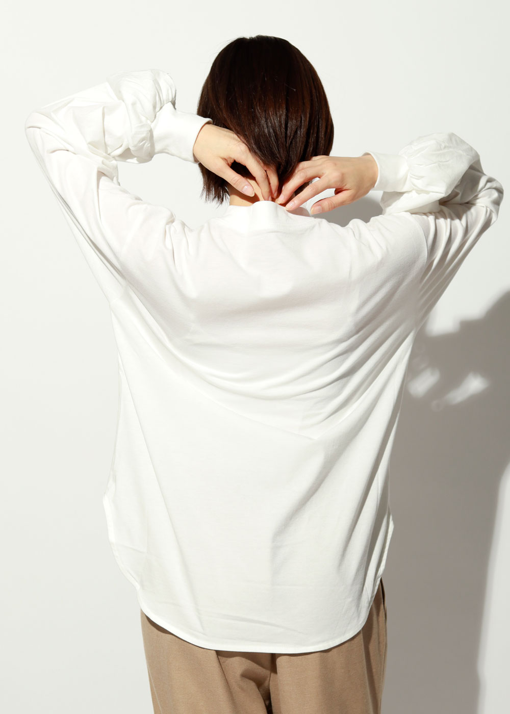 長め丈のオーバーサイズで、レイヤードも自在です。