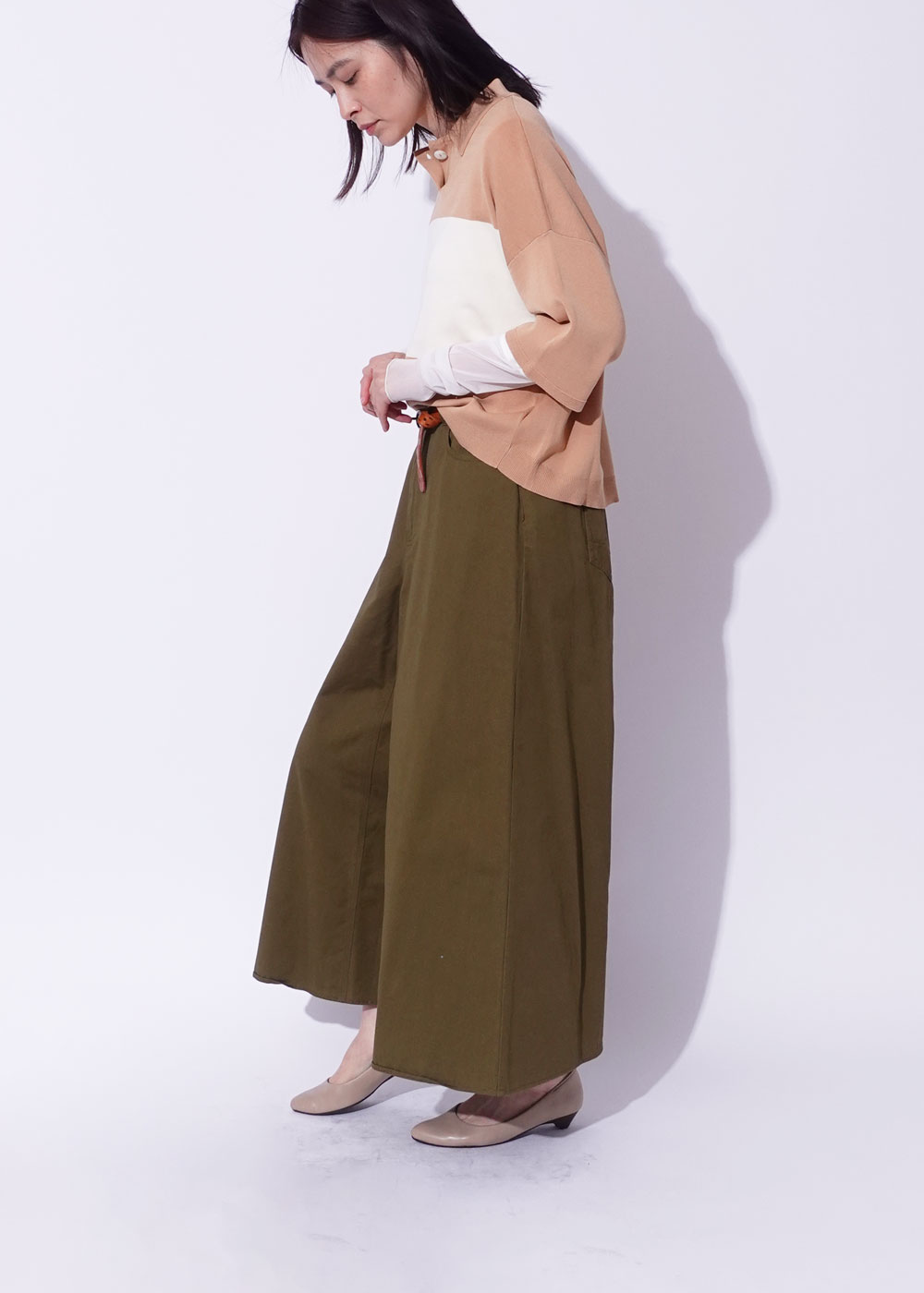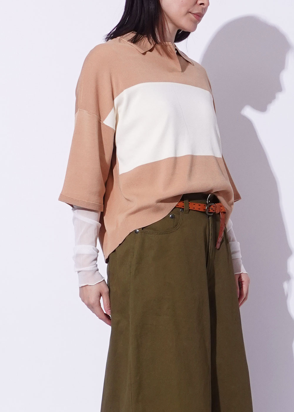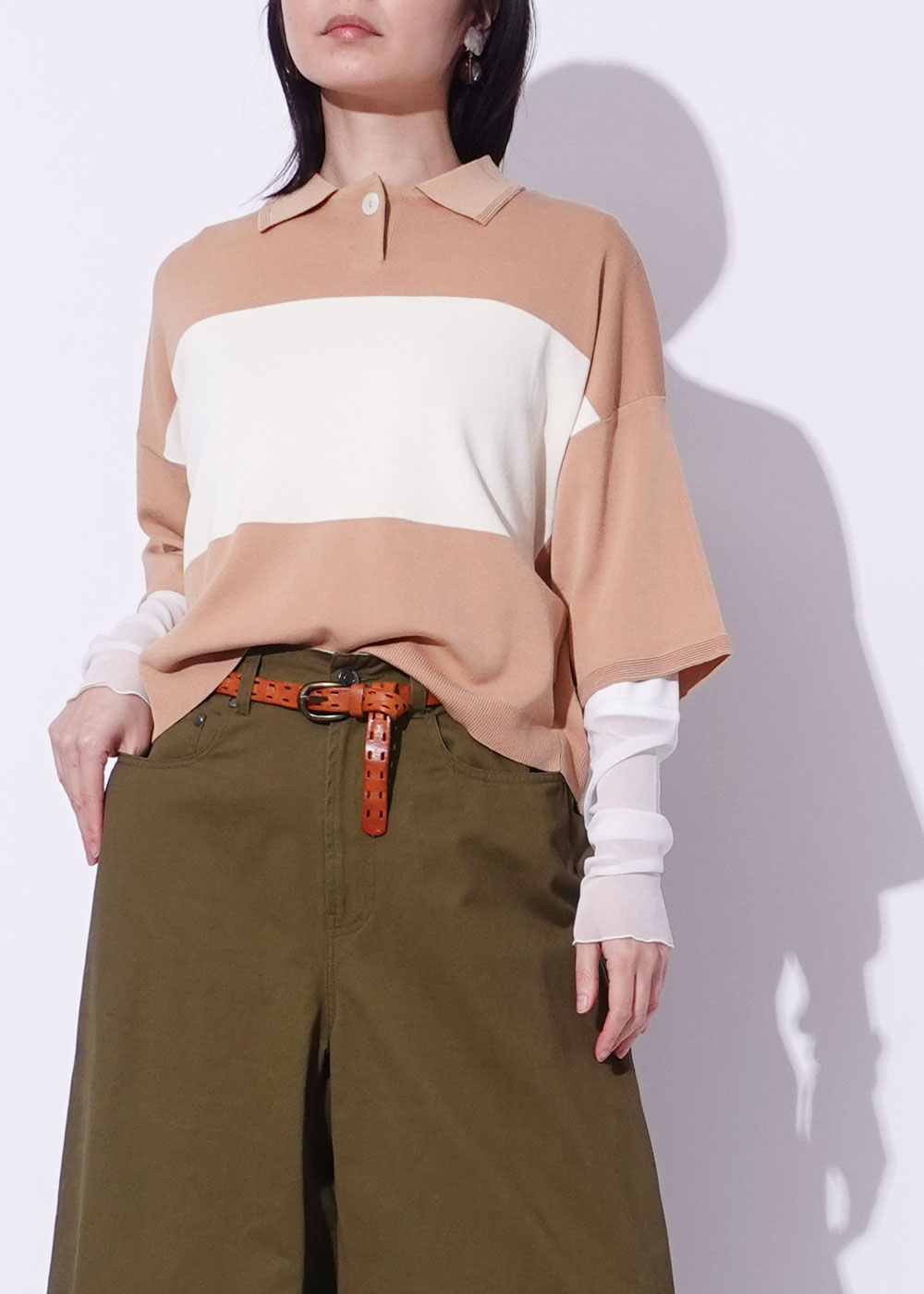ジャストウエストのスラックスや、ハイウエストタイトと好相性。