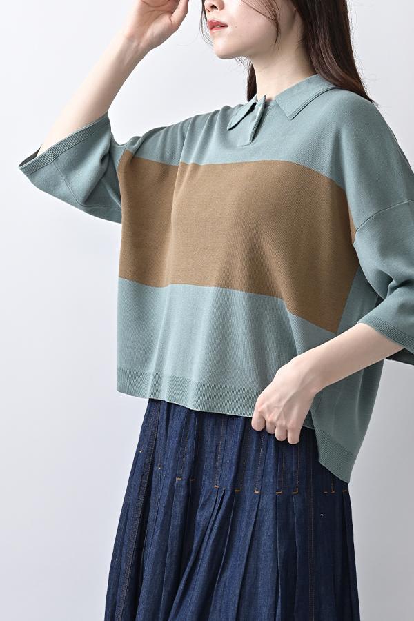 コンパクトな丈感と胸元のバイカラーが視線を上へ誘導し、スタイルアップ効果も。
