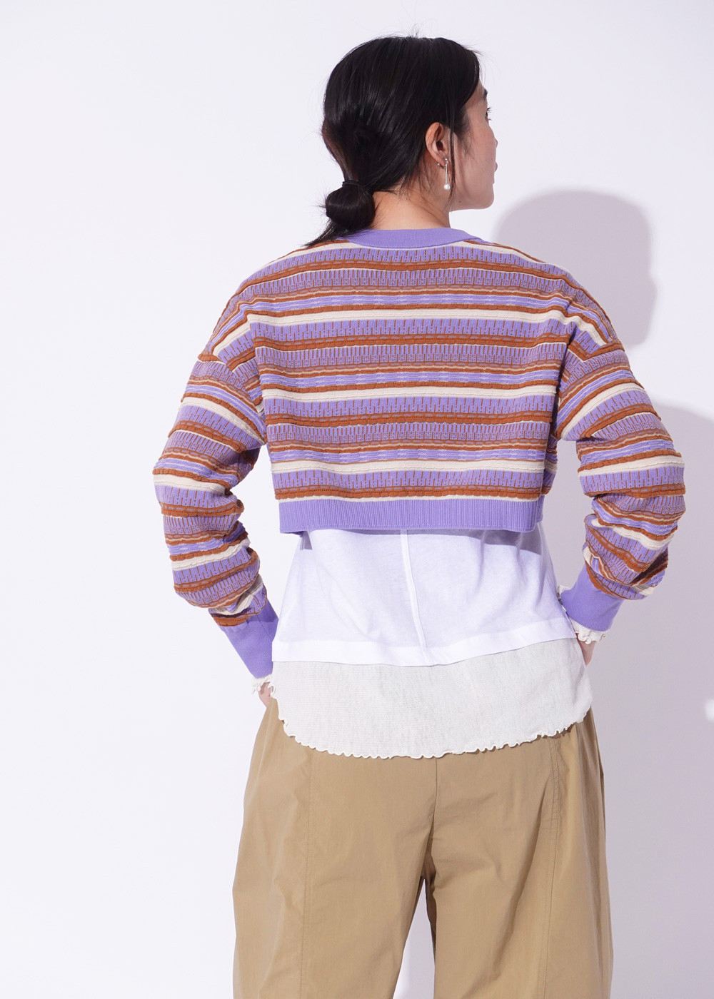 綿100%の糸を彩り豊かに組み合わせた立体編みも魅力。