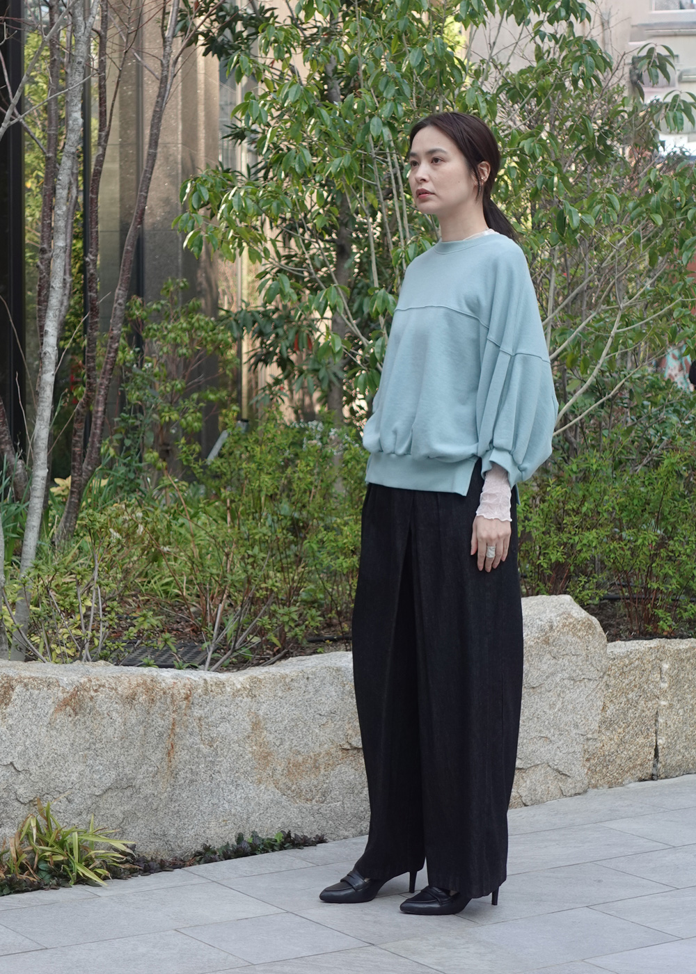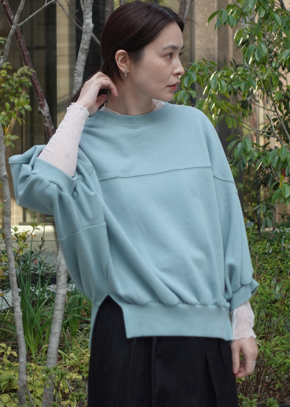 抜け感と品を備えた、大人のための裏毛トップスです。