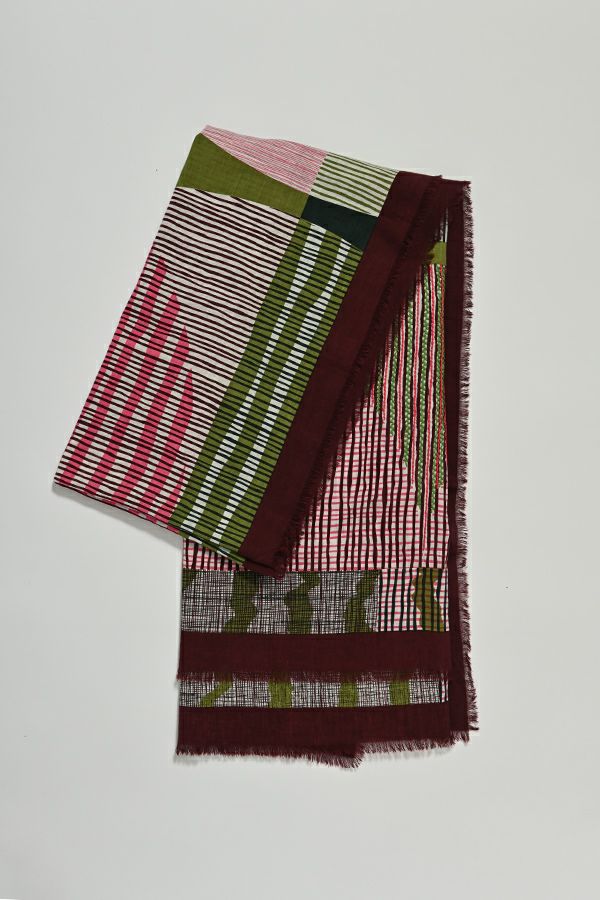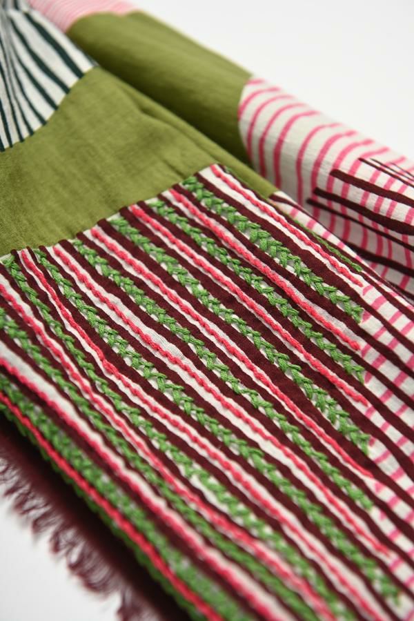 パッと目を惹く絶妙カラーの大判ショール。 多彩な配色の組合せで、顔周りが映えます。ショールにしてもオシャレな1枚です。手刺繍を入れることで全体に表情を出してくれます。これは、手作業だから出来ワザ。 一点投入で映える拘り配色でコーディネイトのアクセントに。