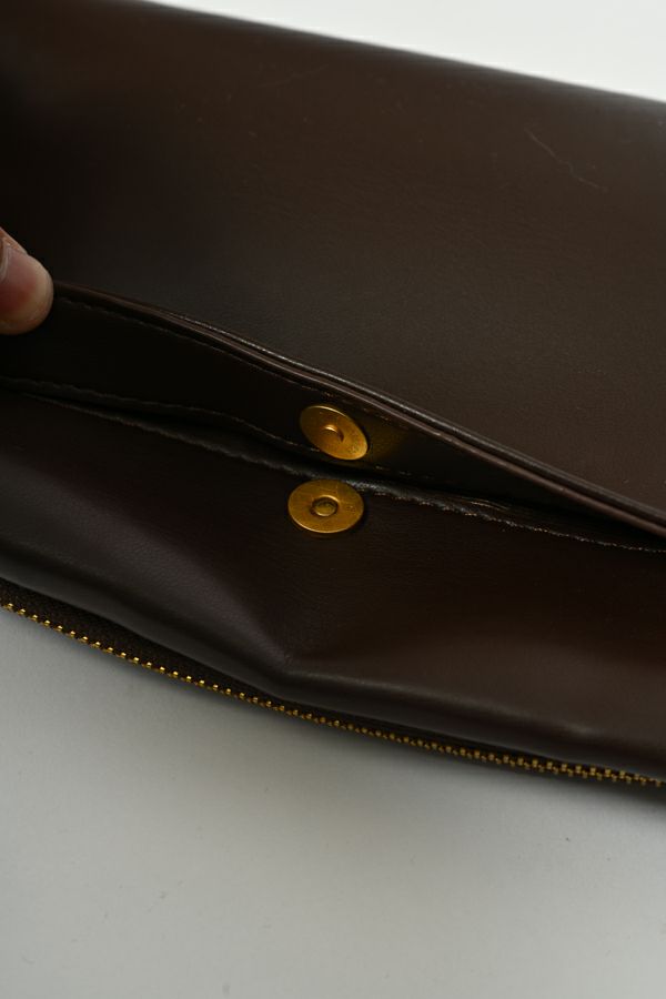 洗練を纏う、大人のスマートクラッチBAG。 スリムなシルエットながら、お財布代わりにも使える収納力を備えた薄マチ仕様のクラッチバッグ。 背面にはスマートフォンが入るポケットを備え、見た目だけでなく機能性も抜群。 シヨルダーの長さも中側で調整ができ、スタイルやシーンに合わせて持ち方をアレンジできます。 フォーマルな装いにもカジュアルなコーデにも馴染み、毎日のスタイルを上品に引き締めてくれる、大人のためのスマートな一品です。