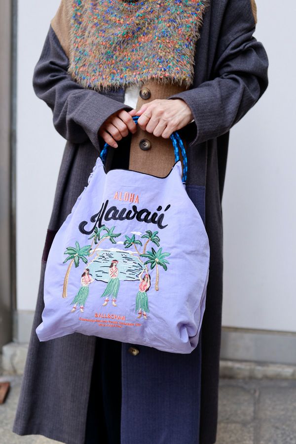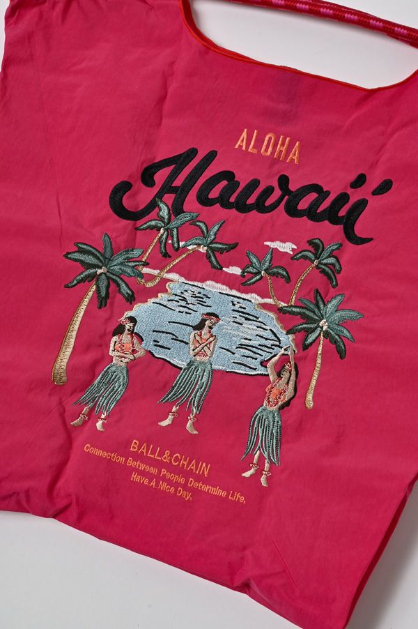 今話題のブランド「Ball&Chain」 Ball&Chain オリジナルデザイン「HAWAII」 気分はハワイ旅行 まだまだ夏は終わらない‼️ 持ち手に使用されているロープ状のハンドルを変形させ、トートバッグ、ショッピングバッグ、ショルダーバッグの3ウェイで使用することができます。 耐久性や撥水性に優れたポリエステル素材に刺繍を施した、ファッション性を追求したサスティナブルなエコバッグです。 普段使いはもちろんのこと、プレゼントとしてもおすすめです。 限定数入荷につきお早めにお買い求めください。