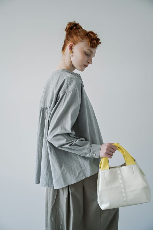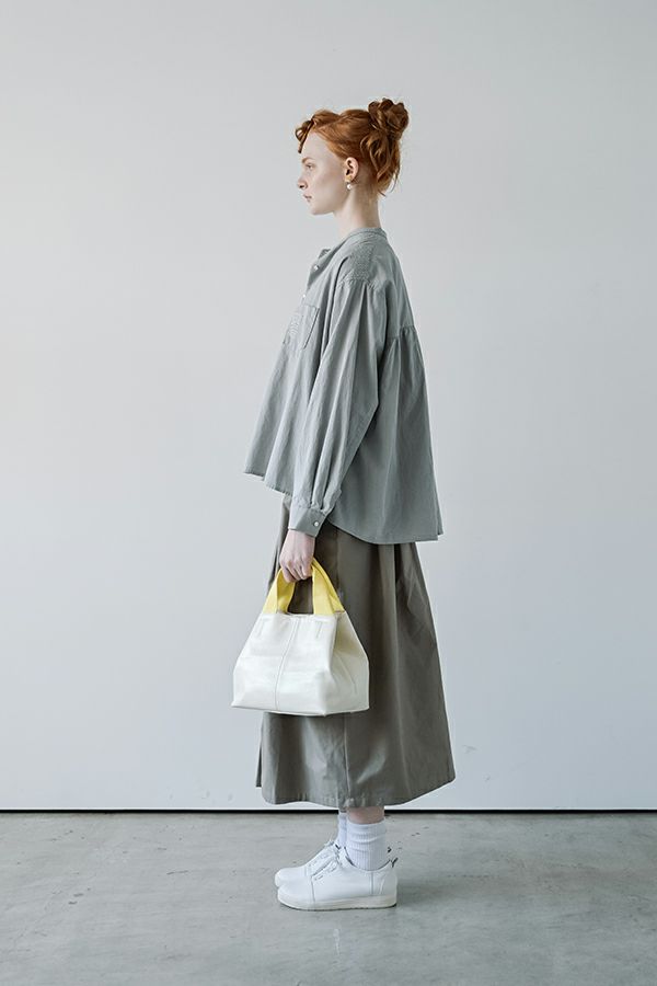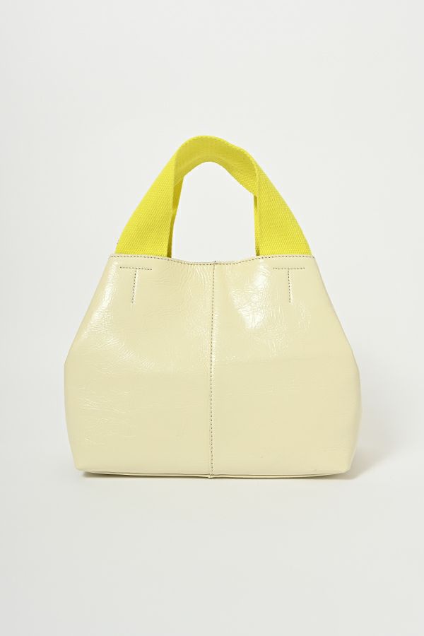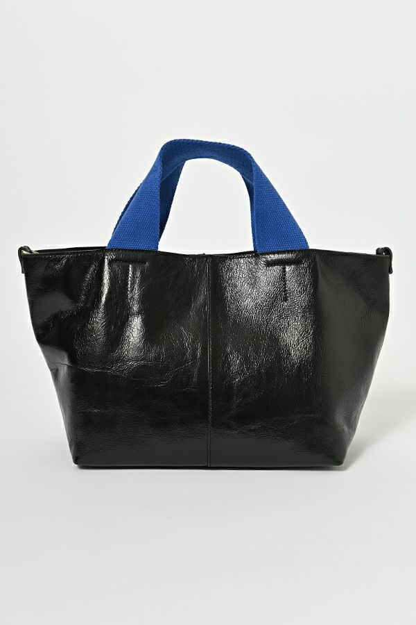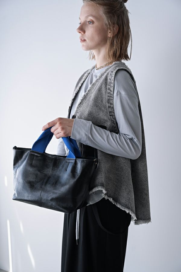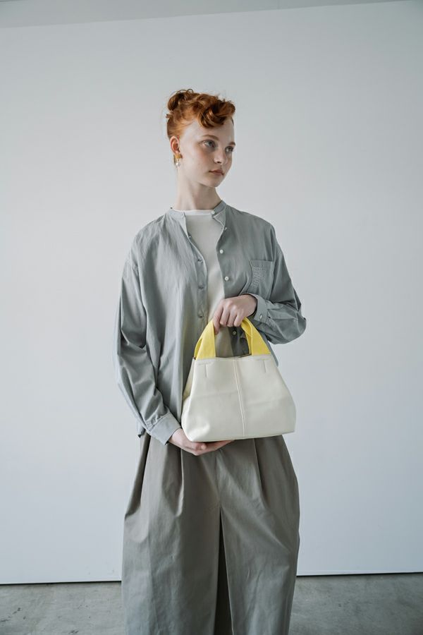 絶妙なサイズ感でスタイリングに映えるトートBAG。 光沢のある牛皮革のバッグ。カラフルなハンドルとの組み合わせが新鮮。 シンプルなスタイリングにプラスすれば、こなれ感のある雰囲気に。 両サイドの金具を留める事で形が変わる仕様です。内装にはファスナーポケット1つとオープンポケット2つが付いています。