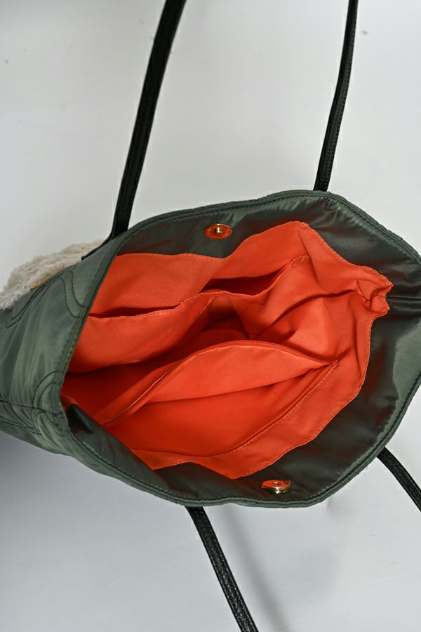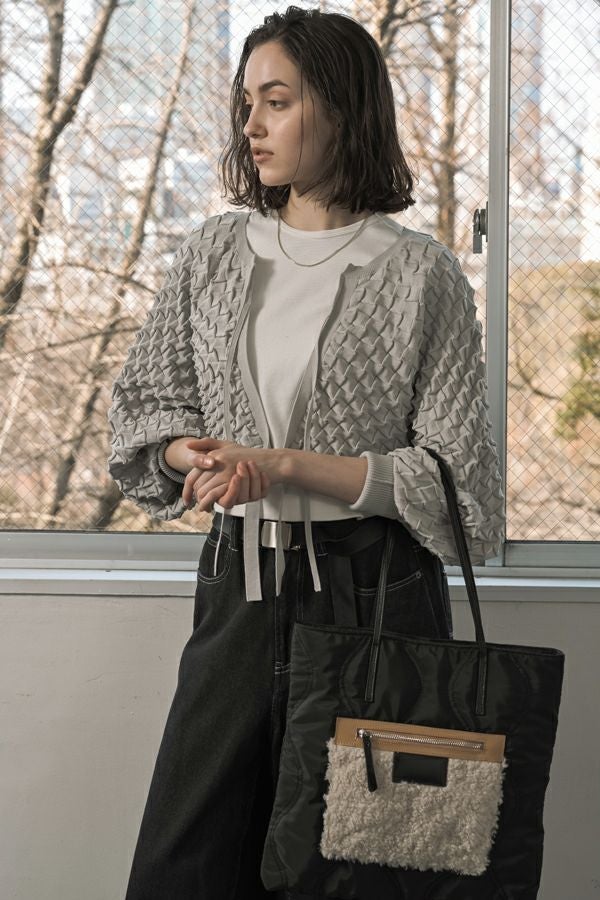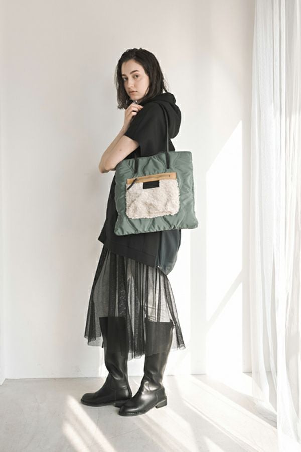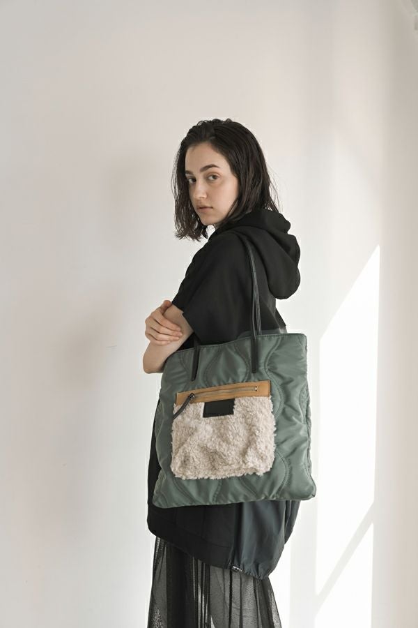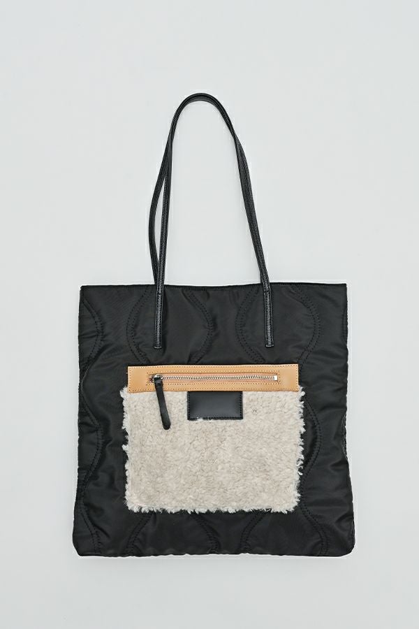 遊び心溢れる、デザイントートBAG。 フェイクファーポケットがデザインアクセントに。モードにもカジュアルにも合わせやすい雰囲気に仕上げています。 A4ファイルがすっぽりと入るサイズ感もポイントです。内装にはファスナーポケット1つとオープンポケット2つが付いています。