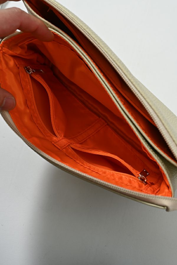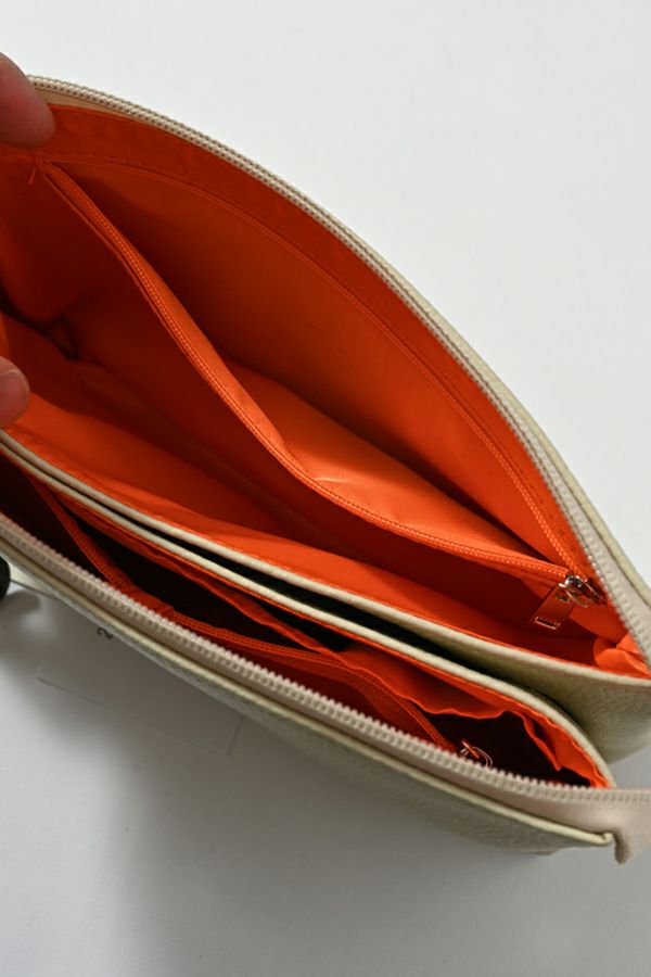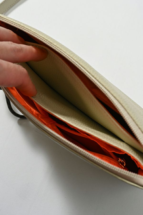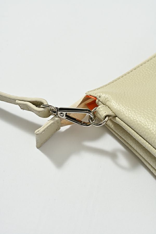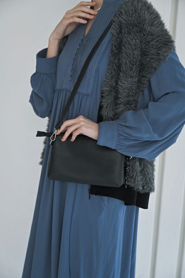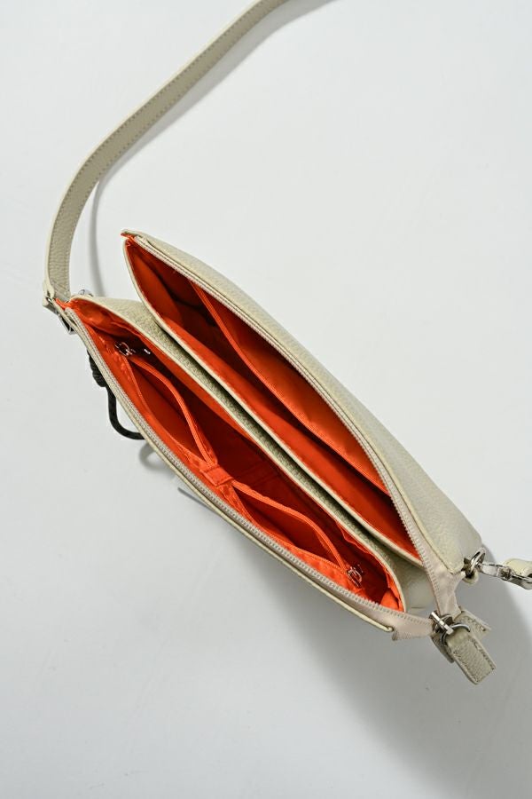 理想的な便利さ、これ1つで身軽にお出掛けが叶うミニショルダーBAG。 牛革を使用し、コンパクトでありながら、スマホとお財布などの必需品が入れられる優れもの。ショルダーは取り外しが可能でポーチとしても使用可能。 シンプルなデザインの中に、ちらりと覗く大人の遊び心。裏地に配色を施すことで、さりげなく個性をプラス。オフホワイトにはオレンジ、ブラックにはレッドを合わせています。 トレンドのスポーティなコードもアクセントになっています。