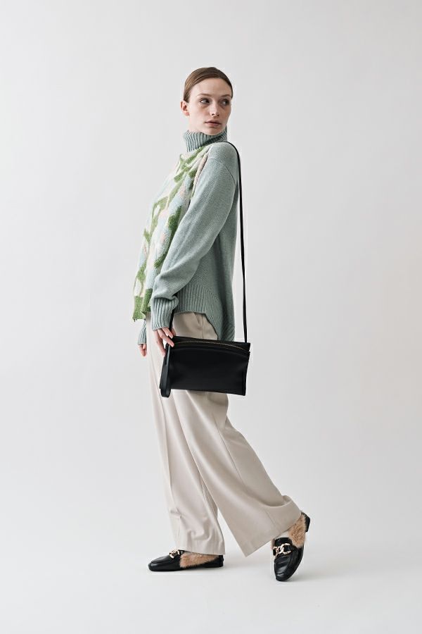 洗練を纏う、大人のスマートクラッチBAG。 スリムなシルエットながら、お財布代わりにも使える収納力を備えた薄マチ仕様のクラッチバッグ。 背面にはスマートフォンが入るポケットを備え、見た目だけでなく機能性も抜群。 シヨルダーの長さも中側で調整ができ、スタイルやシーンに合わせて持ち方をアレンジできます。 フォーマルな装いにもカジュアルなコーデにも馴染み、毎日のスタイルを上品に引き締めてくれる、大人のためのスマートな一品です。