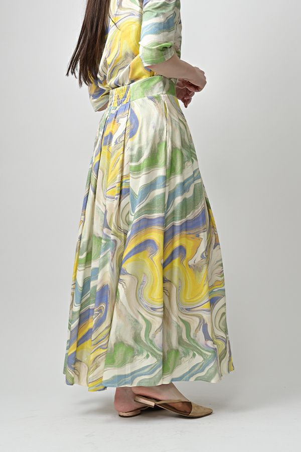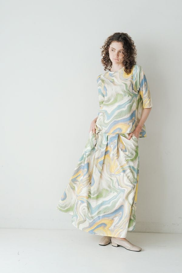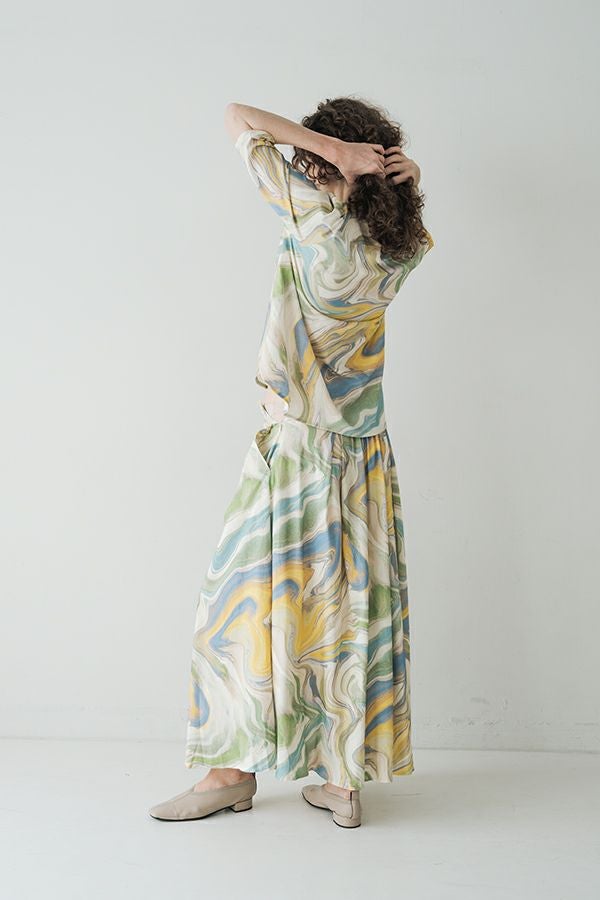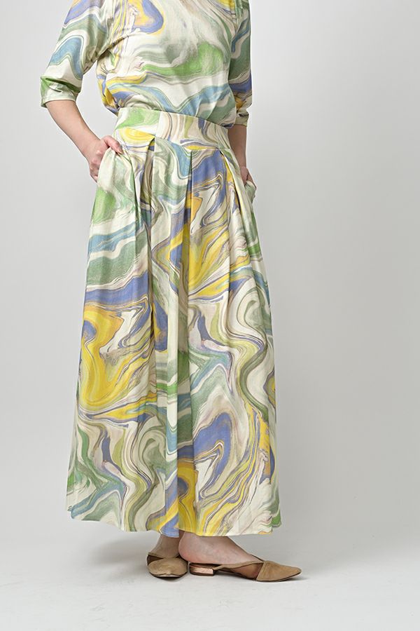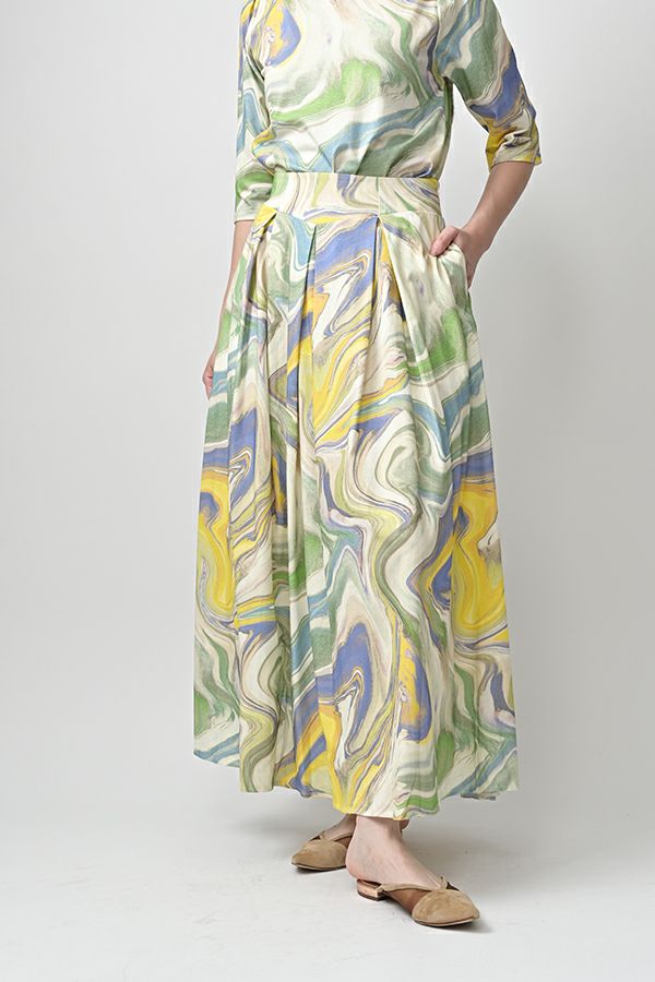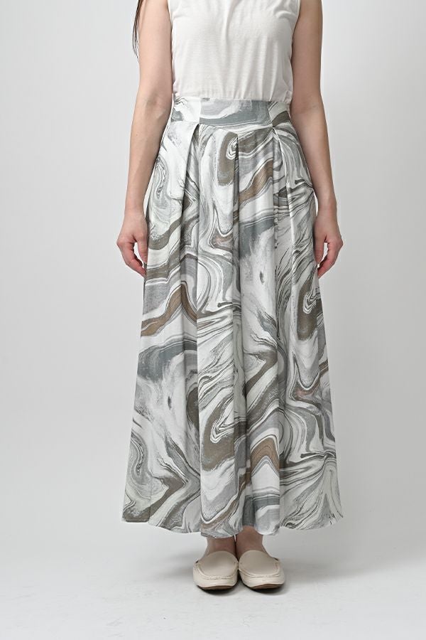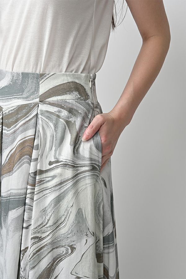 マーブル柄タックカットスカート