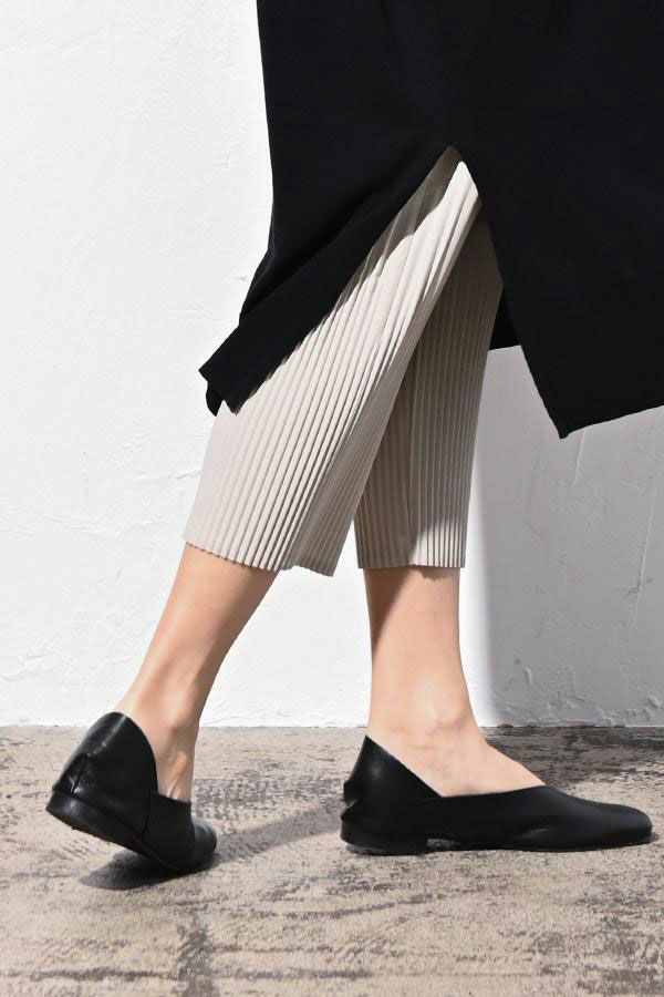 akane大人気のプリーツパンツ。ウエストゴムで楽ちんでヒップと裾でプリーツ入ってすっきり見えます。軽くてシワにならずお腹周りとヒップにゆとりあり、レギンスとしても優秀です。