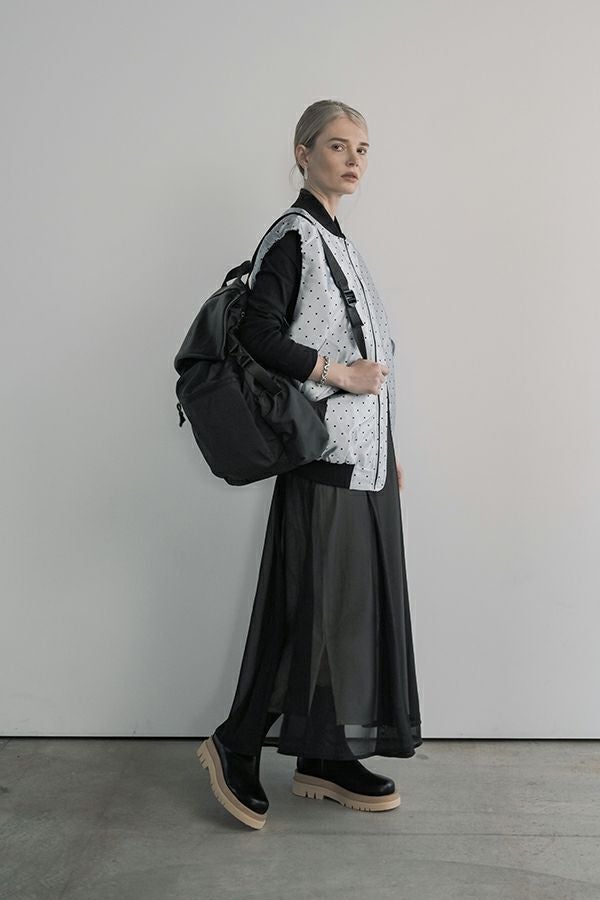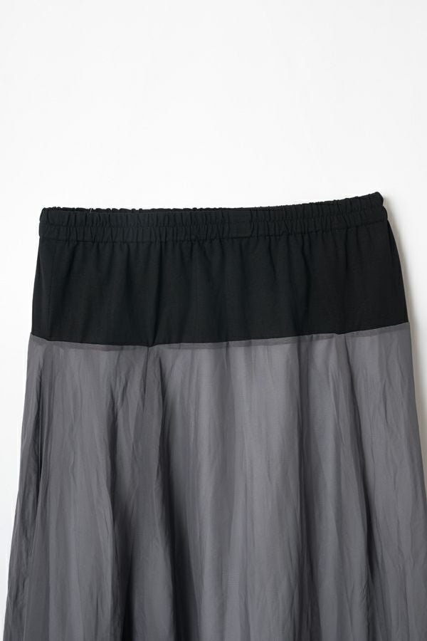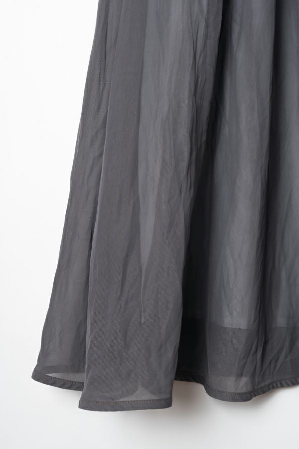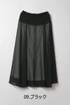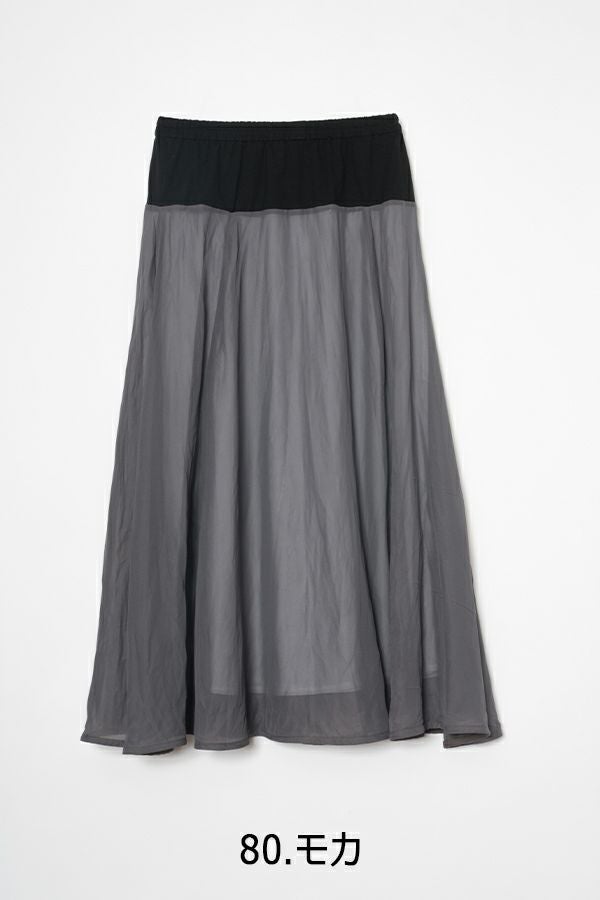 シフォンにワッシャー加工を入れたシンプル上品スカート。 ウエスト部分はカットソーを使用しているので締めすぎない履き心地がポイント。シフォンの裏地は白を使っているので、重くならない軽やかな見た目になります。 カジュアルなトップスやシンプルなプルオーバーに合わせても、さりげなく上品な印象にまとめてくれるお役立アイテムです。