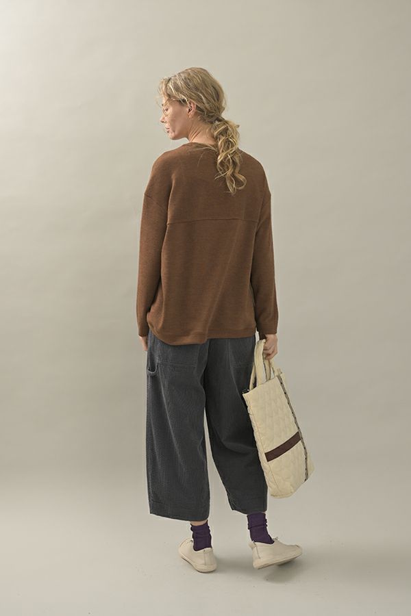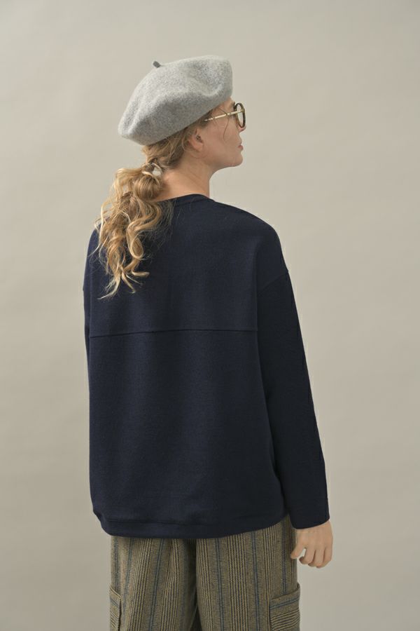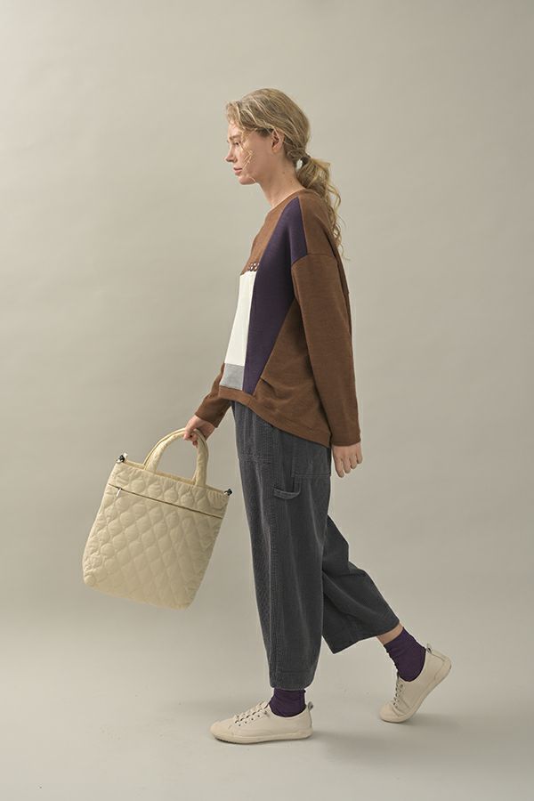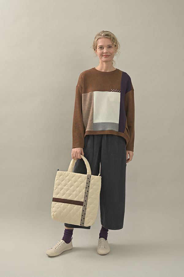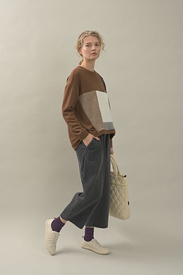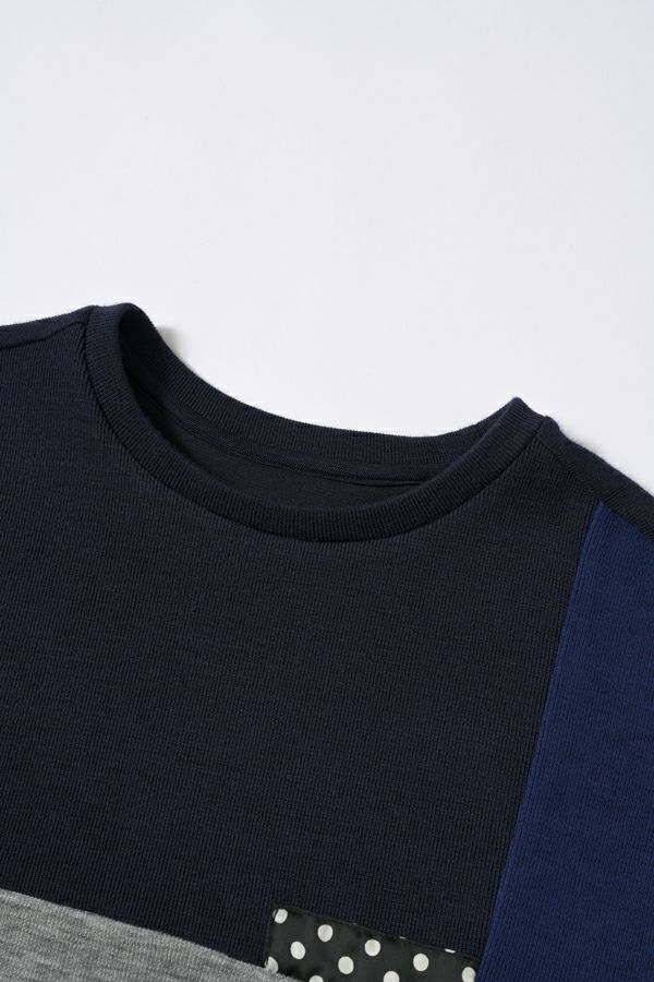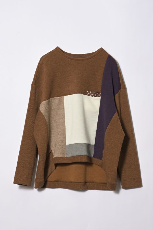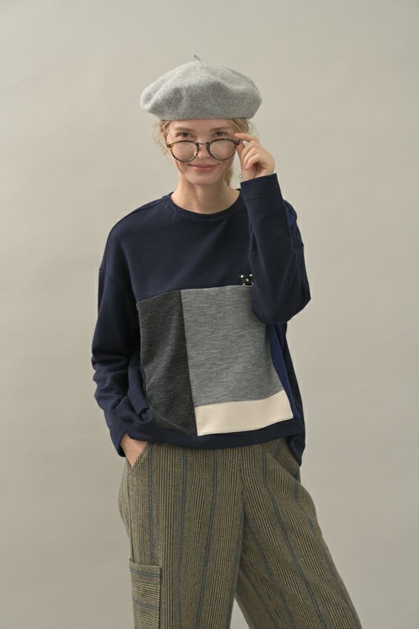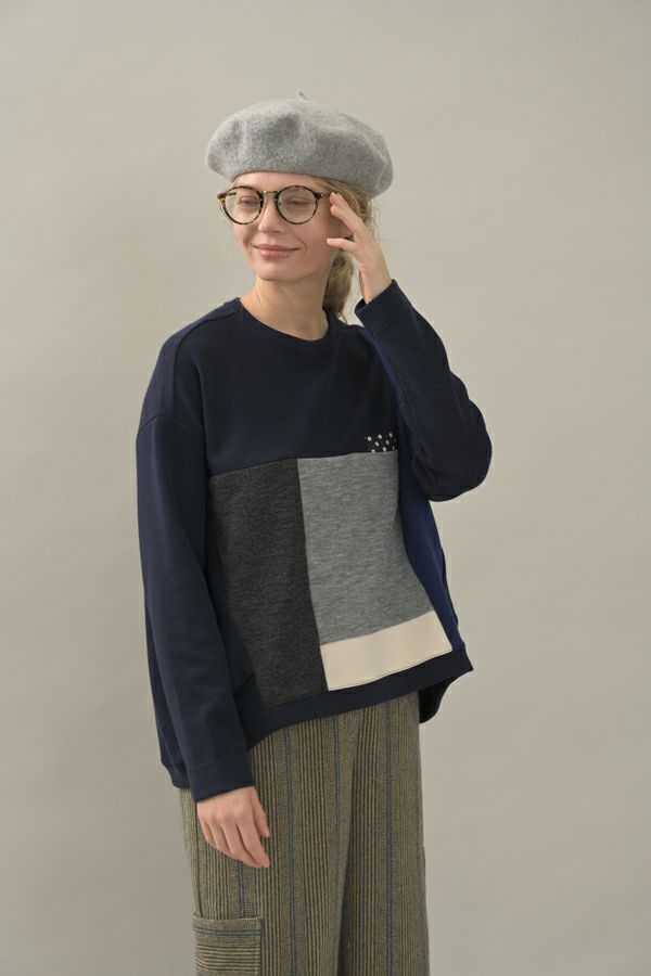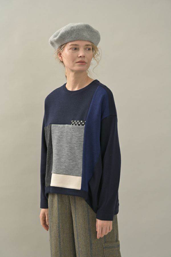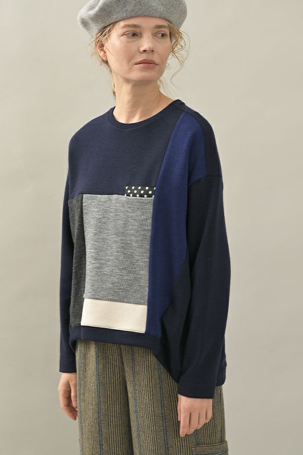 配色パッチワークが大人可愛いカットソープルオーバー。 ゆったりした身頃に、細めの袖ですっきりとしたコンパクトラインに。 胸元のドットポケットは眼鏡がさせて便利です。 ヒップを覆う後ろ長の丈感と後ろの横切り替えは丸みコクーンで体型カバーしてくれます。 ポリエステル系の軽くて柔らかいジャージー素材はリラックスした着用感。 ボリュームのあるパンツやスカートに合わせやすい丈感です。