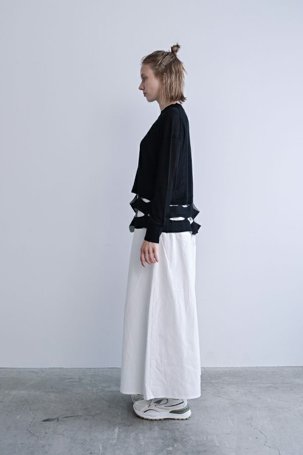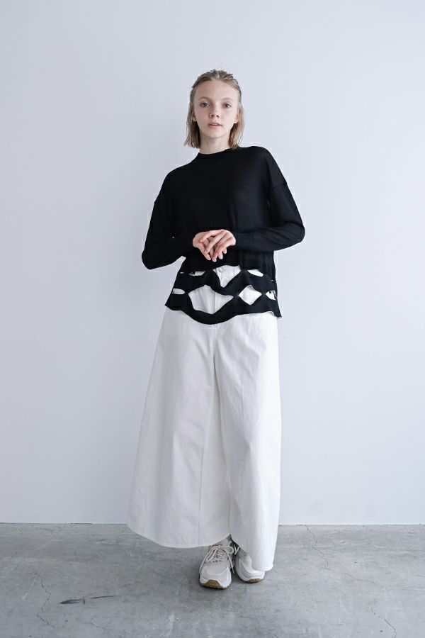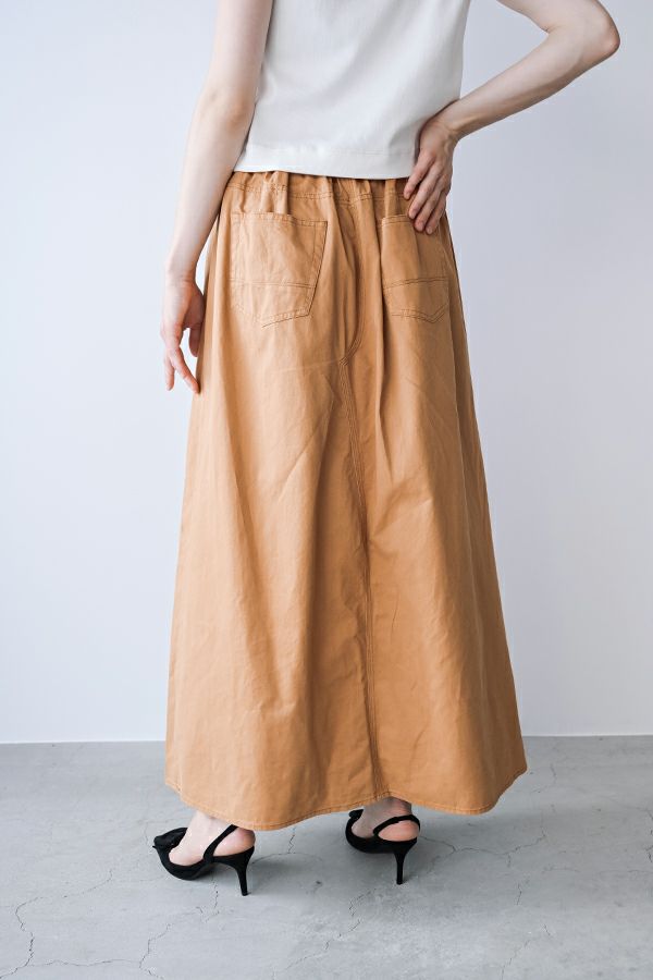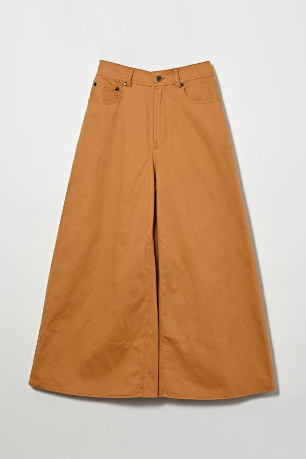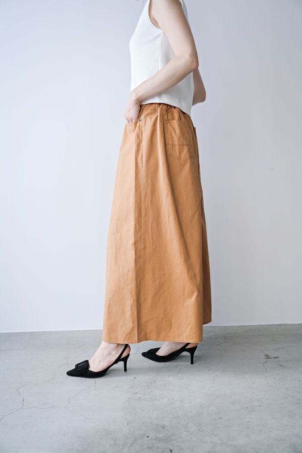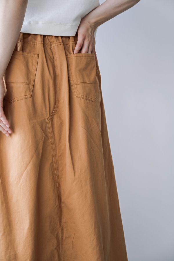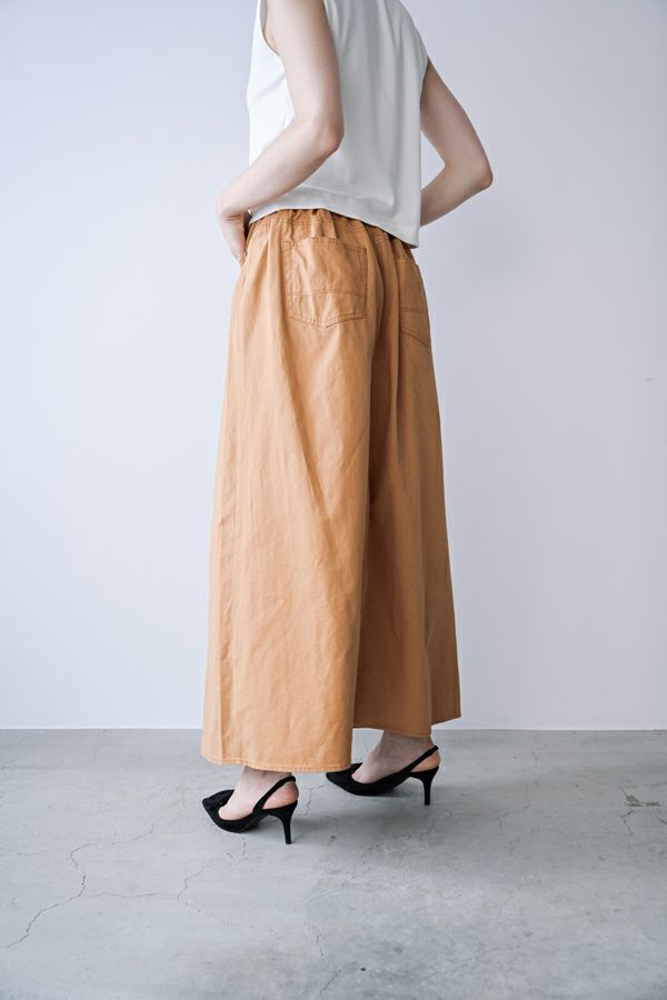 デニムスカパンのカラーバージョンが、昨年大好評。今季は定番として新色カラーも登場です。 前から見るとワイドパンツ、後ろから見るとAラインスカートになっているデザインパンツ。後ろゴム仕様になっているのでラクチンなのにオシャレ! 股下にステッチを入れることで、生地が足の動きに付いてくるので、自転車に乗った時に車輪に巻き込まれる可能性も軽減されます。 カラーバージョンはステッチを配色にせず生地と同系にすることで、きれいめスタイリングに合わせやすくしました。下半身をキレイにカバーしてくれるのでスタイルアップ効果も期待。 短丈のアイテムとの相性も◎