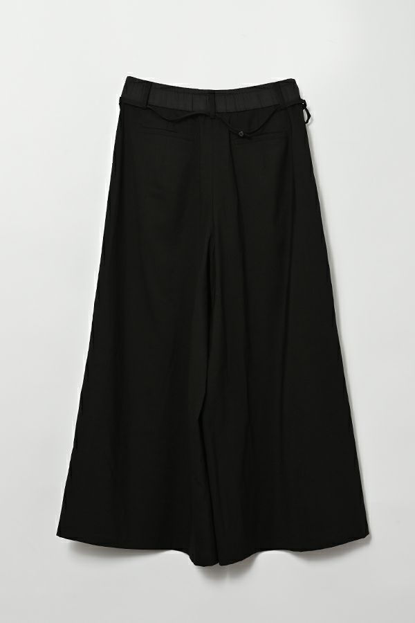 ハイセンス×こなれ感。一点投入で大人モードが叶うデザインパンツ。 「折り紙」からインスパイア。一見巻きスカート風に見える、モード感漂うデザインが目を惹く。ゆったりとしたワイドシルエットは、風通し良く清涼感ある穿き心地です。 体型カバーも兼ね備えた優秀アイテム。 そして、拘りが詰め込まれたウエストデザイン。上品なツヤ感のある素材のベルトに、エッジの効いたピスネームでアクセントを。ベルトループに巻かれた共生地の細ベルトは、ルーズに巻いてこなれ感を出したり、ラフに垂らして抜け感を出したり、スタイリングの雰囲気に合わせて遊べます。 ●同素材の折り紙ベスト(25168-5210P-W)とセットアップ可
