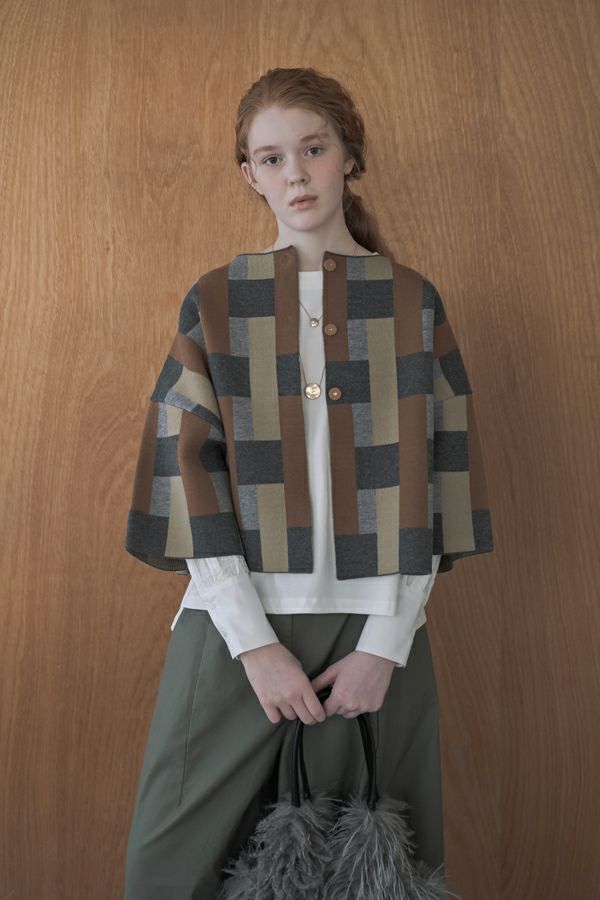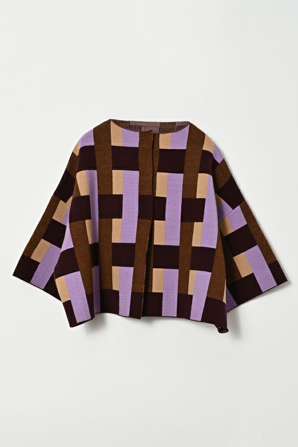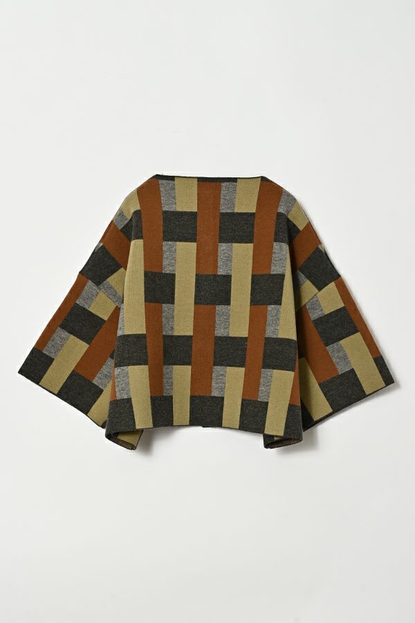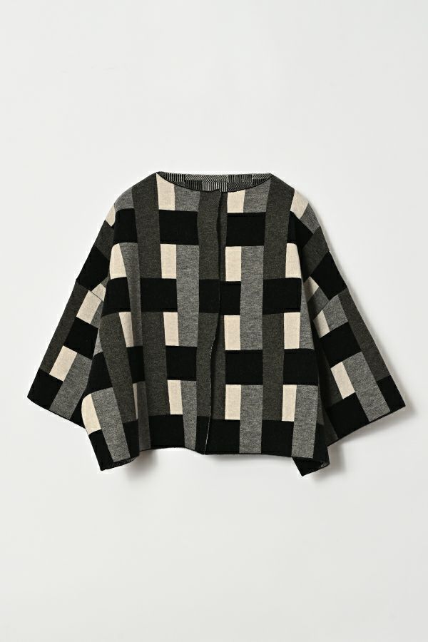 秋冬コーデの主役になる、上品×大胆なバスケットチェックカーディガン。 落ち着いたトーンの配色に目を惹く大胆なバスケットチェック柄が効いたアイテムです。 ネックラインは あえてシンプルな仕様でシャープなデザインに施し上品な印象に。身頃と袖をオーバーサイズにして柔らかなハリ感のドレープとバランスの取りやすいショート丈でオンスタイルにもジャケット感覚で合わせていただけます。 ややオーバーサイズの袖が華奢見え効果がありつつ、短丈の身丈がウエストポジションを高くしてくれるので ボリュームのあるボトムスやマーメイド、ストレートラインシルエットの女性らしいスカートと相性抜群です。
