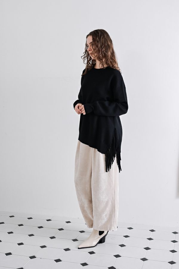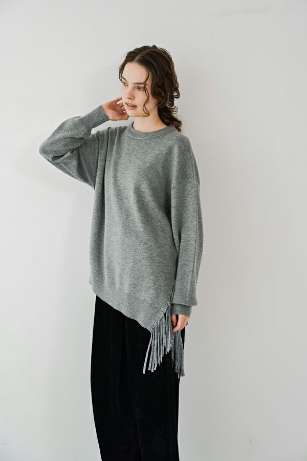 【お届け最短】アシメフリンジスムースプルオーバー