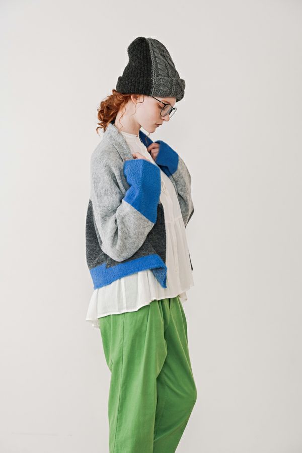 アートな表情を纏う、優雅に羽織る大人のショールカーディガン。 アートに編み上げたジャガード柄に、部分的にあしらわれた短い起毛糸の鮮やかな発色が目を惹く、秋冬の装いに映える一枚。柔らかく編み立てたショールカラーが首元をやさしく包み込み、ぬくもりある肌触りと心地良さを叶えます。 上半身をすっぽりと包み込むリラクシーな着心地ながら、バランスの取りやすい丈感でジャケット感覚でも羽織れる万能アイテム。 シックなカラーのボトムスを合わせれば洗練されたオンスタイルに、デニムと合わせて程よく力の抜けた大人のカジュアルコーデも楽しめます。秋冬のスタイリングをクラスアップする、主役級のカーディガンです。
