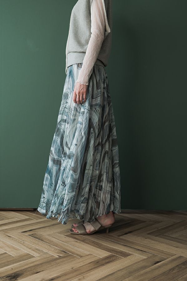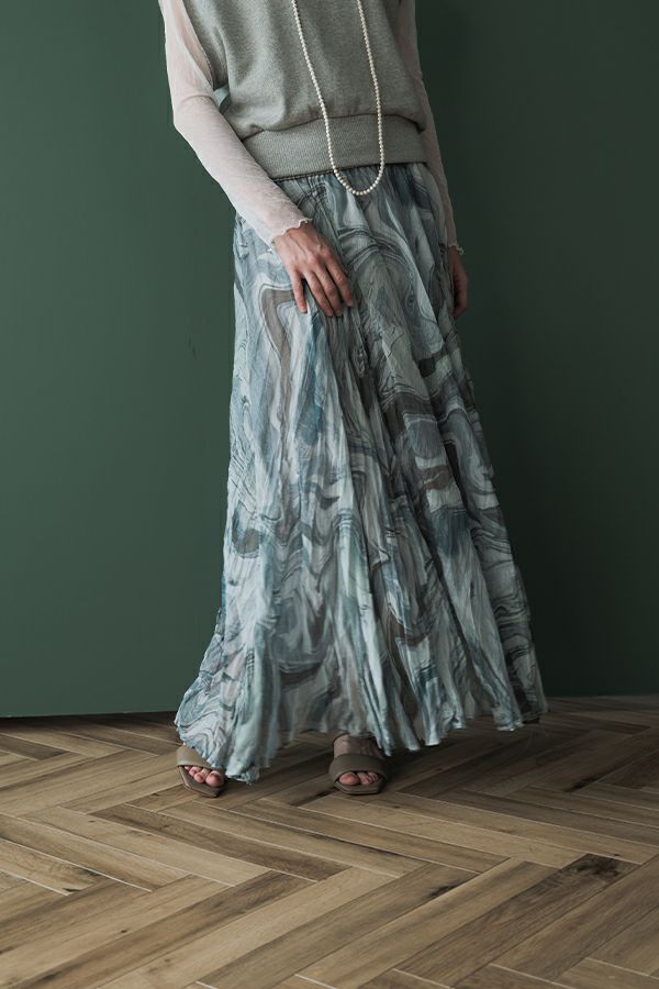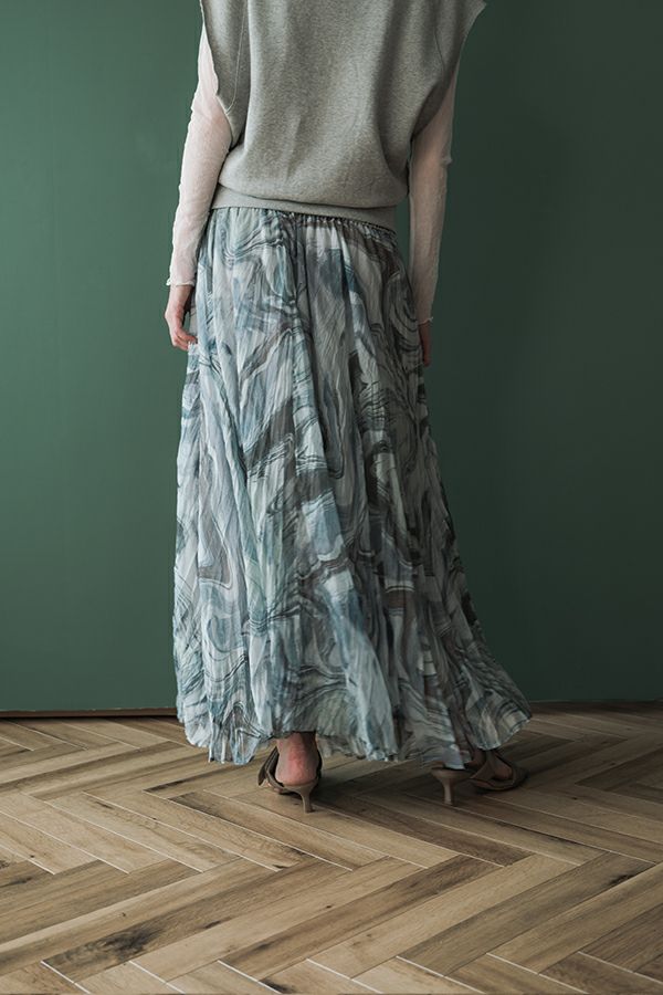 マーブル柄シフォンスカート