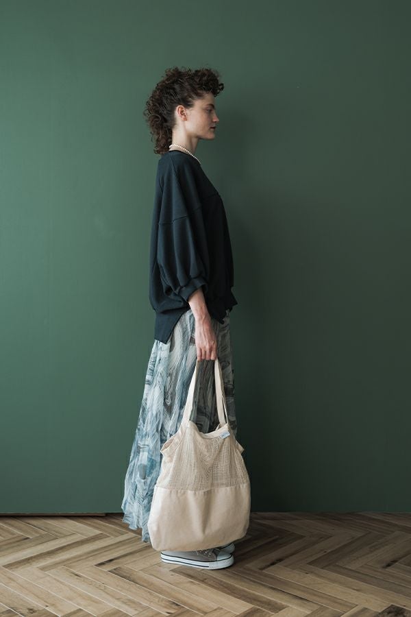 計算された広がりで魅せる、大人のプリーツフレアスカート。 オリジナルプリント柄に沿うように自然に消えるプリーツを施した、上品なフレアシルエット。巧みに計算されたハギ(継ぎ目)を入れることで、ふんわりと広がる立体感のあるシルエットを実現しています。配色裏地で二枚仕立てのようなニュアンスを出しつつ、ウエストはゴム仕様でリラクシーながらもフィット感のある着用感です。 デイリーからセレモニーまで幅広いシーンに対応できる、洗練された大人女子向けのデザイン。シンプルなトップスと合わせるだけで上品にまとまり、軽やかさと華やかさを兼ね備えたスタイリングに仕上がります。足元はバレエシューズやブーツで、きれいめにまとめるのがおすすめです。 ●加工の特性上、1枚1枚の色差や仕上がりにバラつきが見られる場合があります。他の製品では味わえない良さをお楽しみ下さい。 ●スカート丈違いで 2サイズ展開